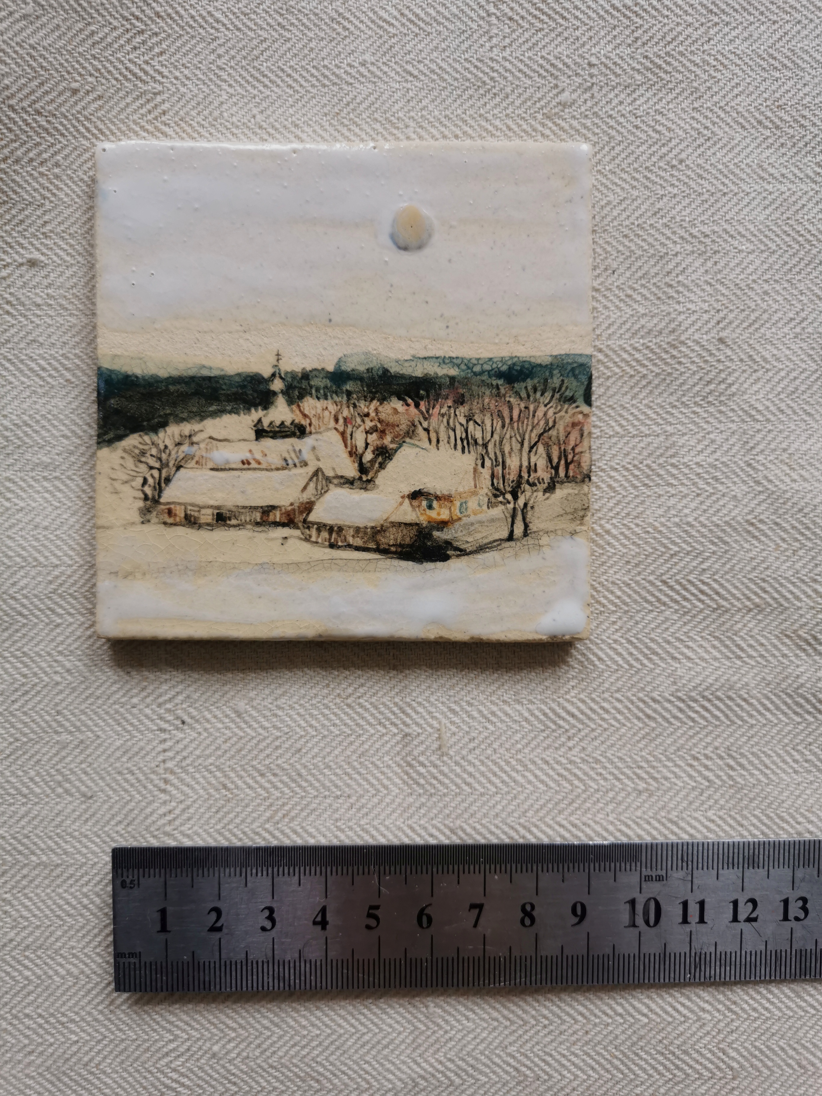 Pejzaż zimowy z Suwalszczyzny z motywem Molenny Staroobrzędowców.