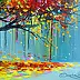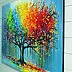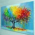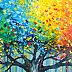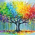 Tree of the periods of being, oil painting on canvas 100% handmade with high-quality oil on canvas, sides painted, for interior or as a gift, will decorate your interior and will delight you and your loved ones for a long time. Ready to hang. A vibrant tree bursts into a spectrum of colors, with leaves transitioning smoothly from shades of green to vivid reds and yellows. The background is a subtle blue, creating a serene yet dynamic visual contrast.