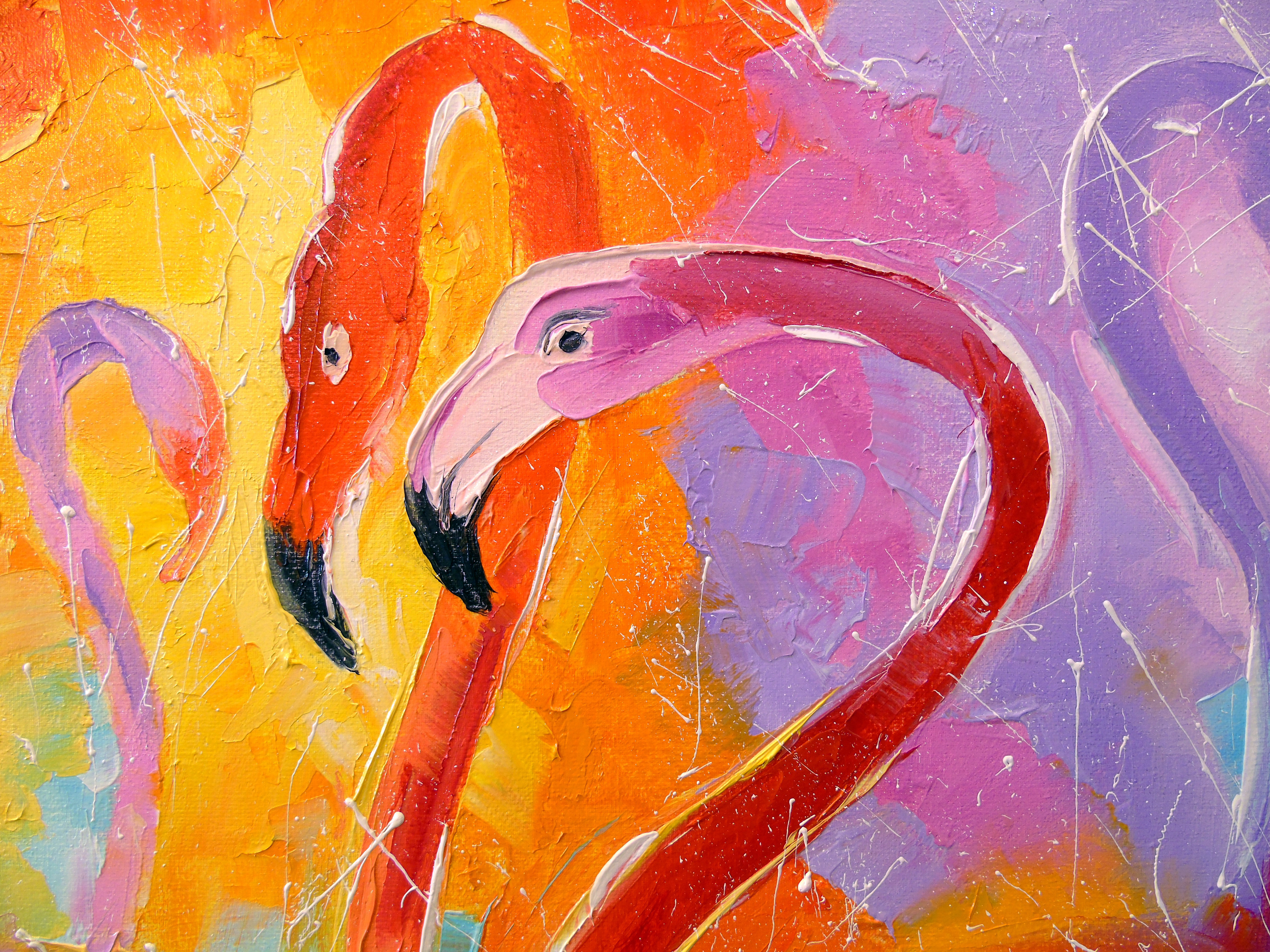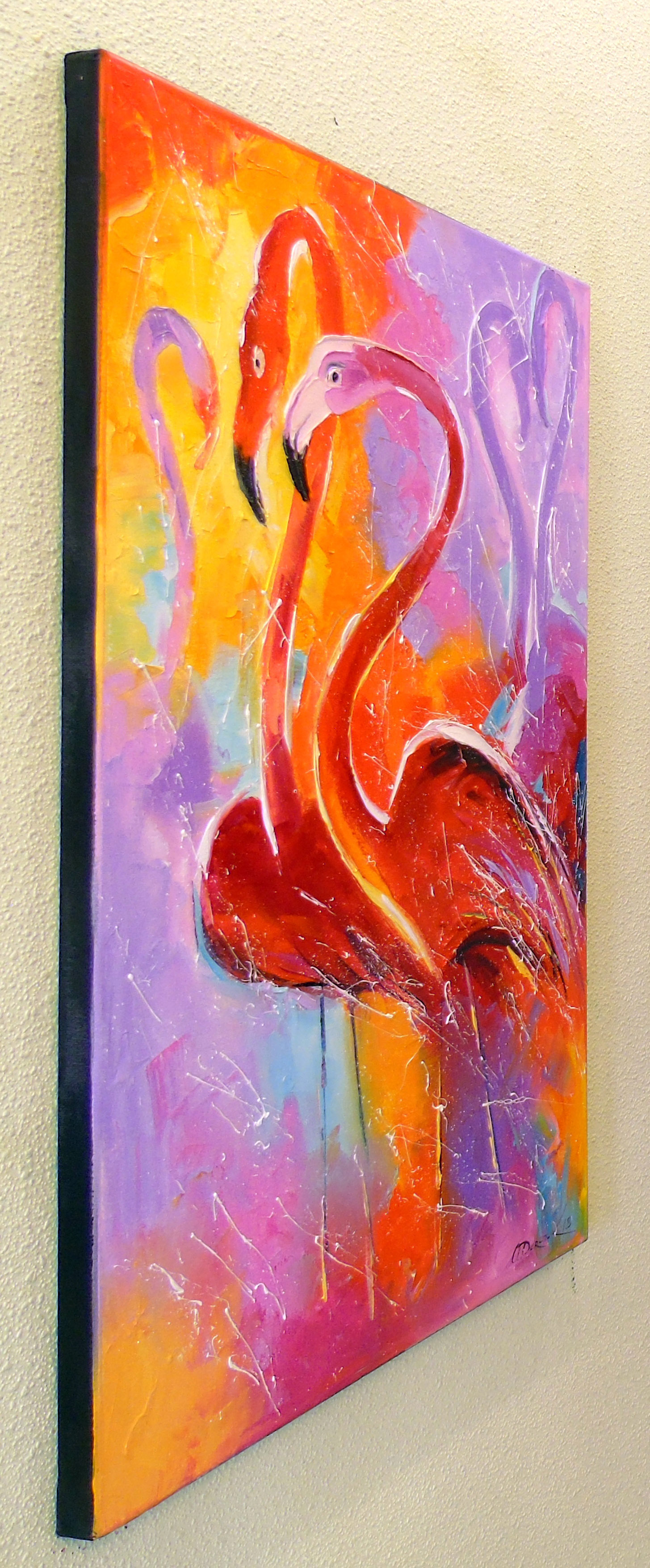 Flamingo on canvas, without frame as the edges are painted, 100% handmade spatula and high-quality oil, for interior or for gift. Decorate your interior and make you and your family happy for a long time. Ready to hang.