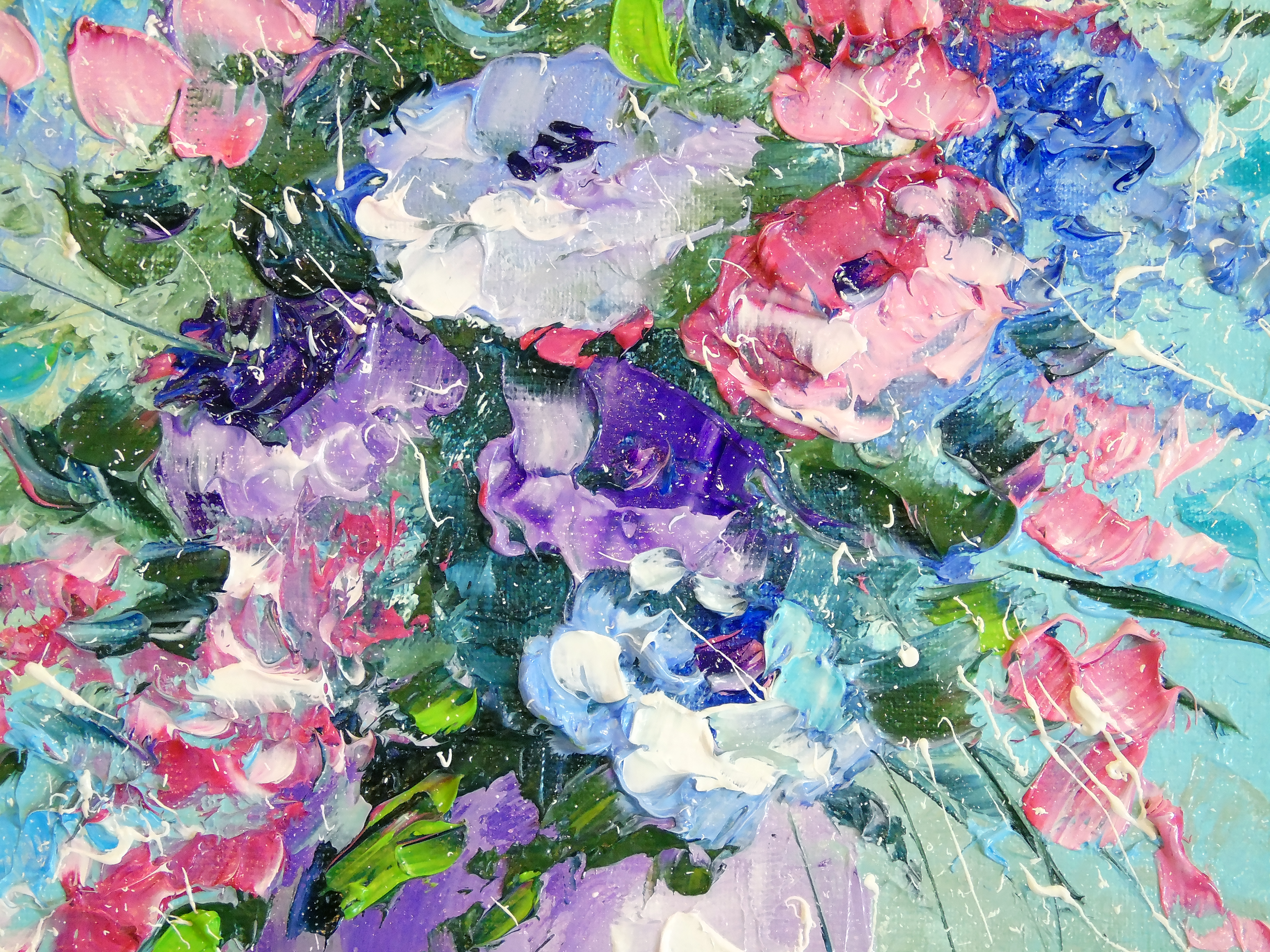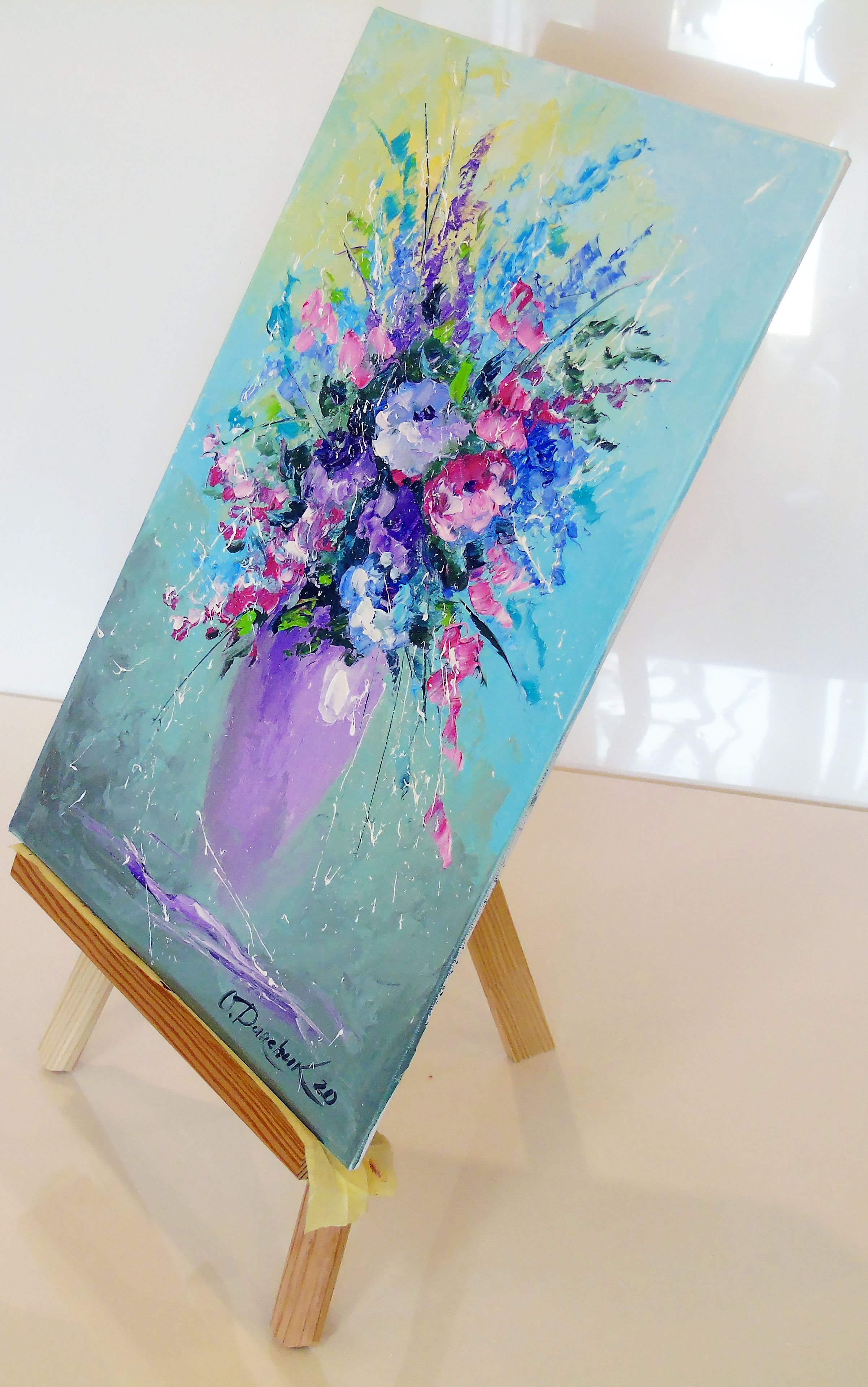 Bouquet of summer flowers oil painting on cardboard canvas without frame, as the edges are painted, 100% handmade with high-quality oil and palette knife . Decorate your interior and feel great positive emotions from work.