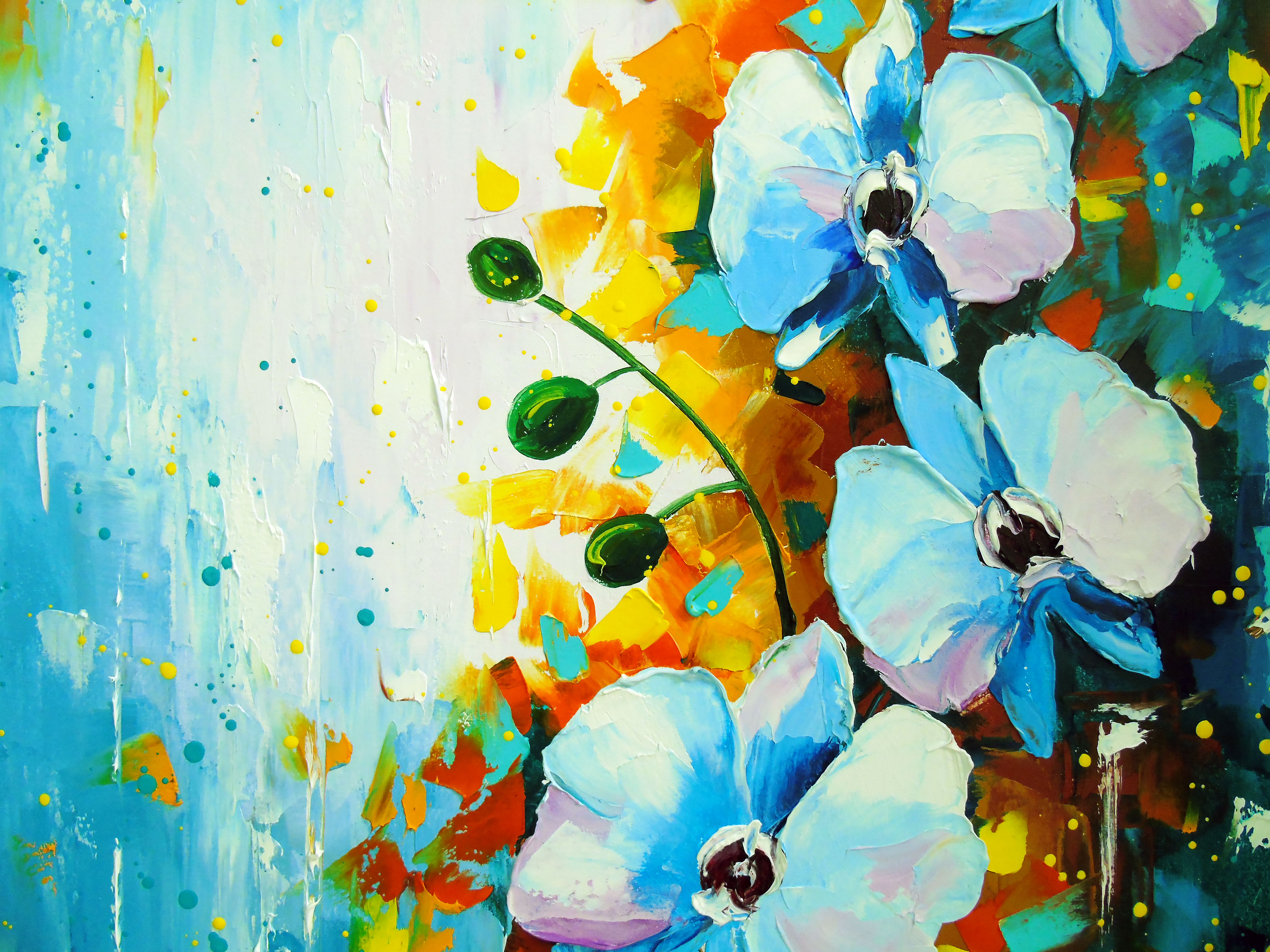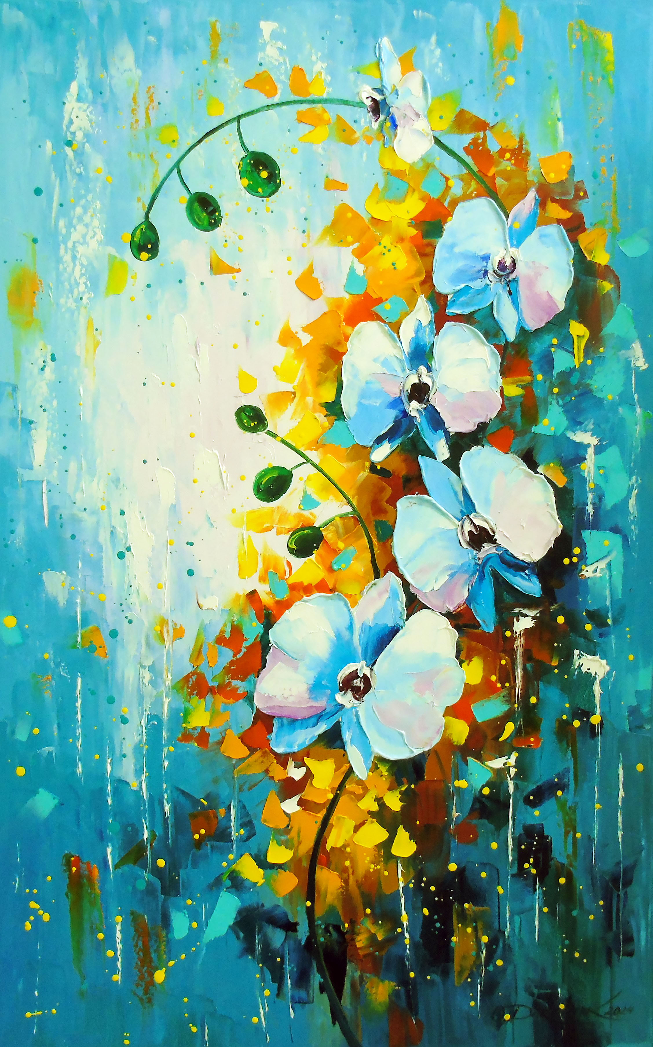 Orchid white and blue, oil painting on canvas 100% handmade with high-quality oil on canvas, sides painted, for interior or as a gift, will decorate your interior and will please you and your loved ones for a long time. Ready to hang.