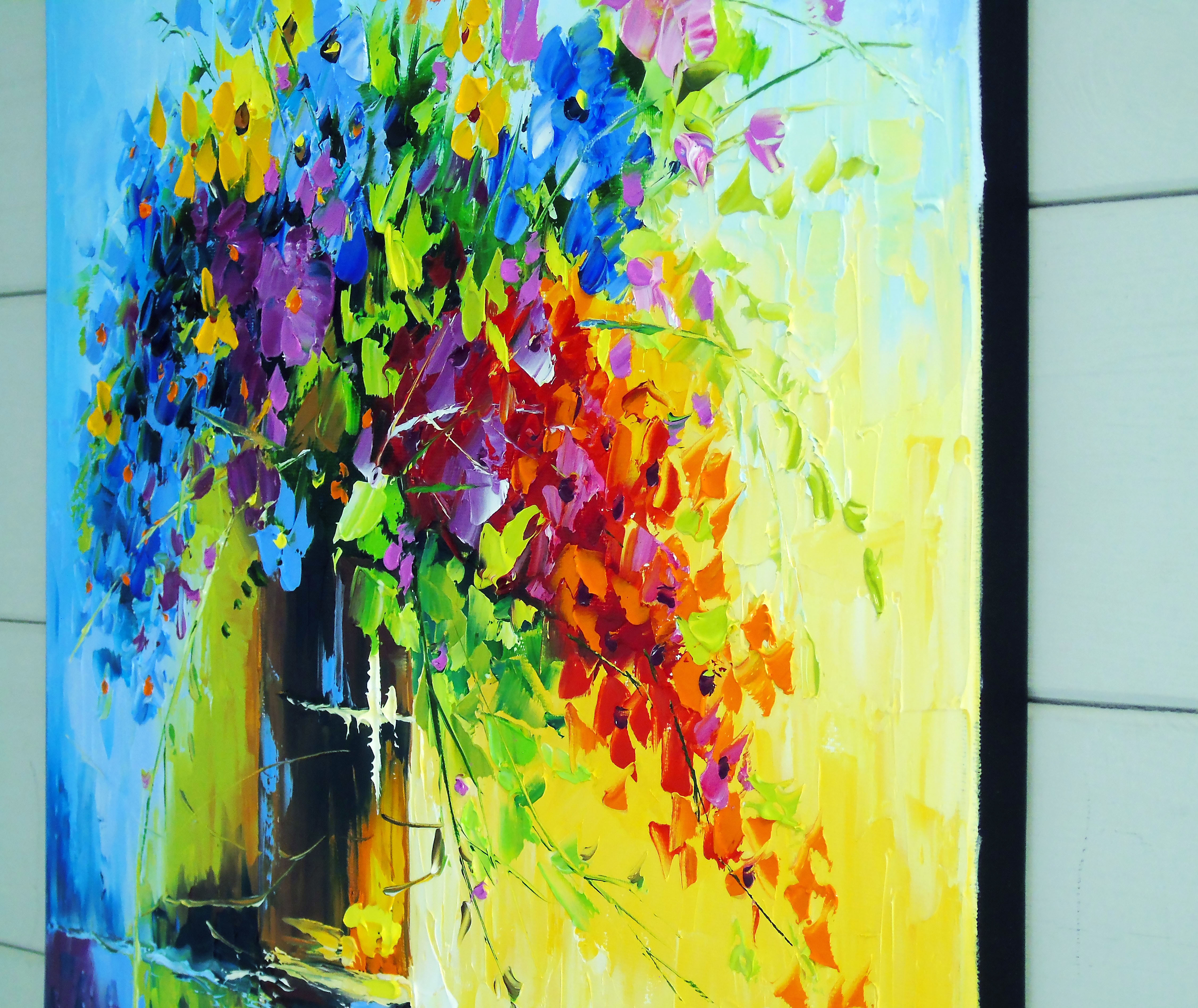 Bouquet of wildflowers oil painting on canvas 100% handmade with high-quality oil on canvas, for the interior or as a gift, will decorate your interior and will delight you and your loved ones for a long time. Ready to hang.A colorful bouquet of flowers is depicted in a lively and expressive manner. The vivid colors create a sense of joy and dynamism.