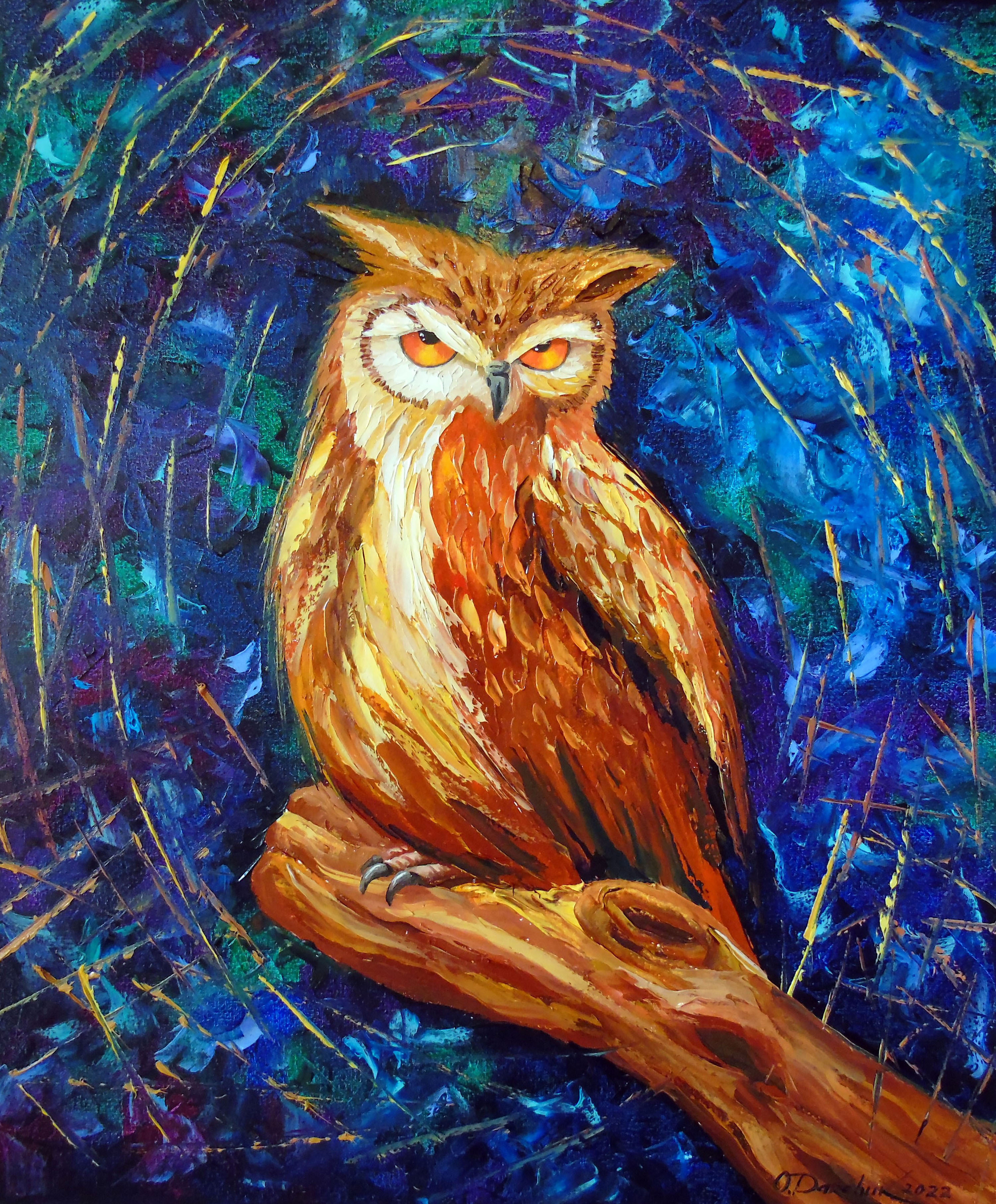 Owl on canvas, without frame, the edges are painted with 100% handmade spatula and high-quality oil, for the interior or for a gift. Decorate your interior and make you and your family happy for a long time. Ready to hang .