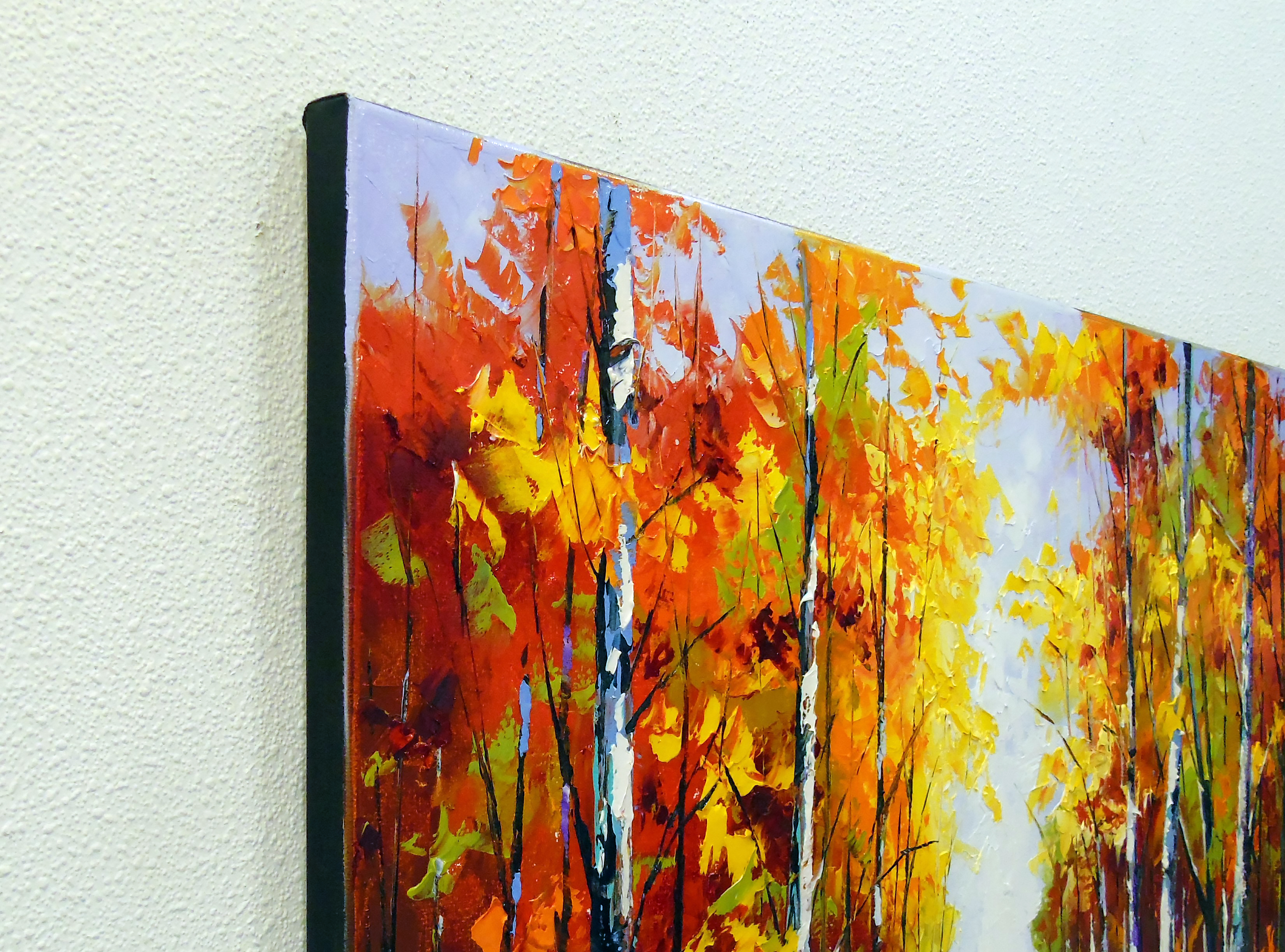Birch road to light oil painting on canvas without frame as the edges are painted, 100% work with high-quality oil and palette knife, a picture for the interior of your home and positive emotions for the whole family . Ready to hang.