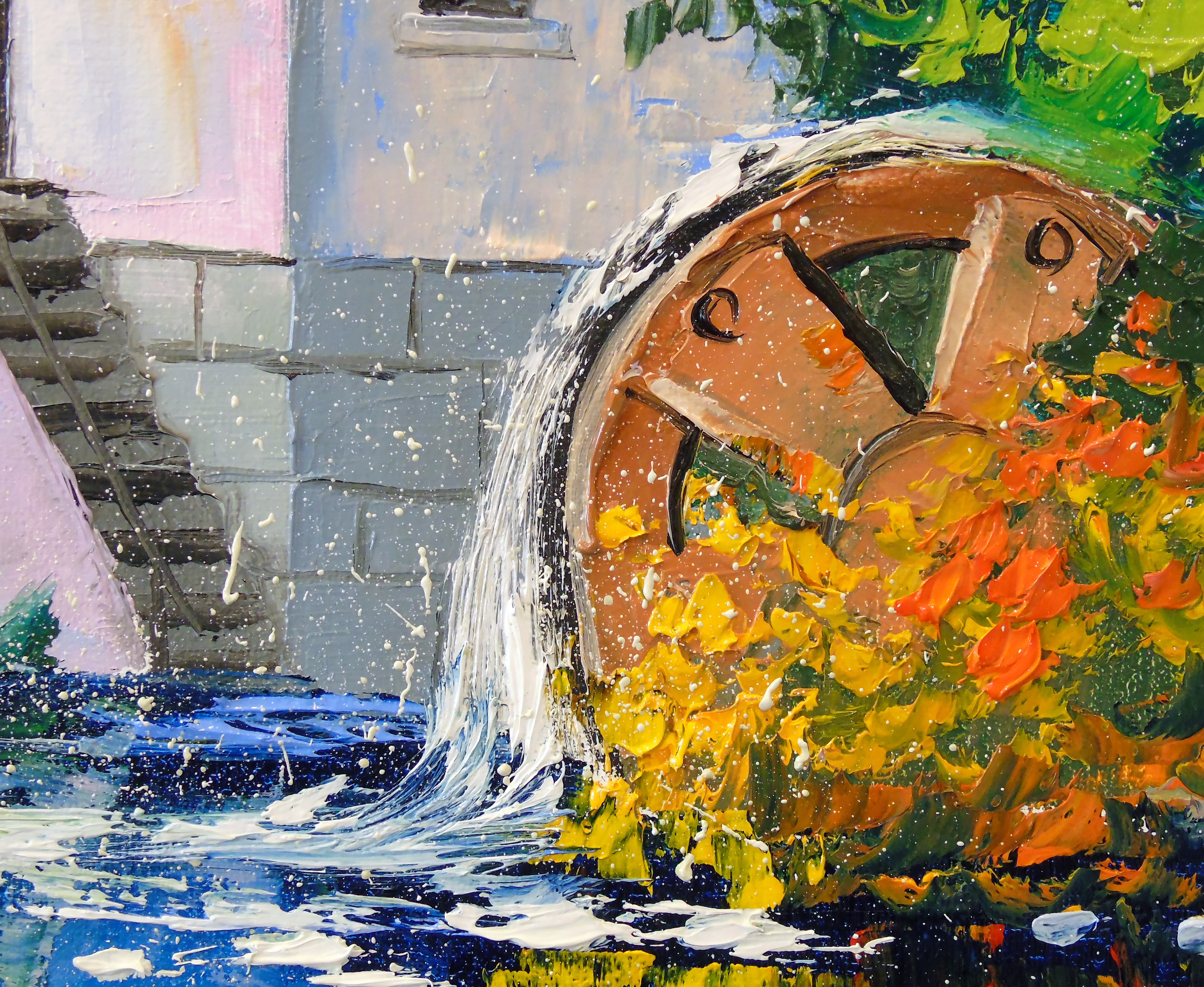 Mill by the river oil painting on canvas without frame in a single copy, as the edges are painted, 100% handmade with high-quality oil and palette knife . Decorate your interior and feel great positive emotions from your work.Ready to hang.