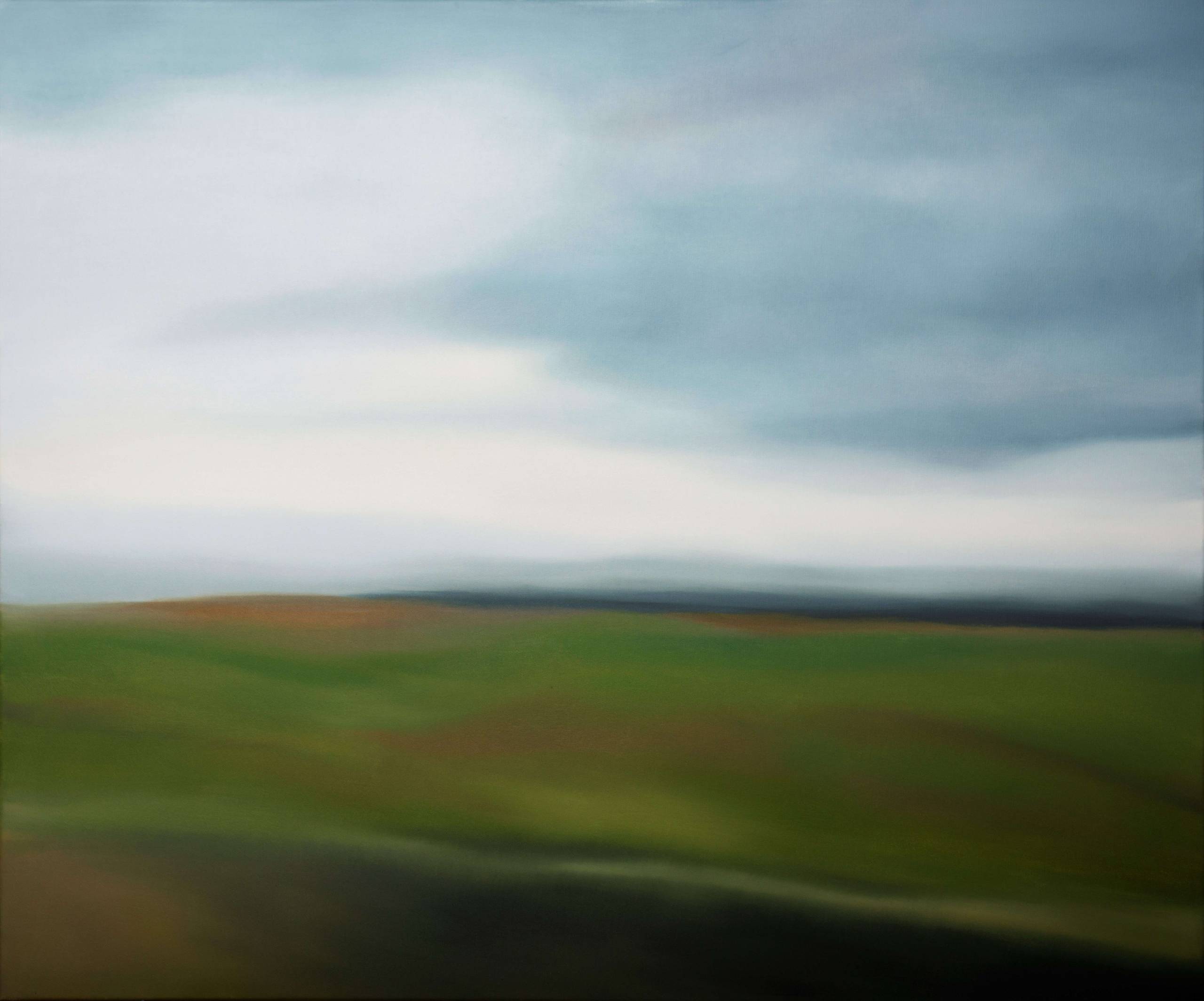 Obraz emanuje spokojem, jak cisza przed burzą. Delikatne przejścia między odcieniami zieleni i błękitu tworzą miękką, niemalże senna atmosferę. Wydaje się, jakby krajobraz rozmywał się na krawędziach, co dodaje mu tajemniczości. Artysta wykorzystuje technikę rozmycia, by uchwycić ulotność chwili. Gdzieś na horyzoncie pod ciężkimi chmurami czai się niepewność, ale też nadzieja na lepsze jutro. "Kotki są fajne" - powiedziałby mały obserwator, patrząc na te zamglone kształty. Przestrzeń na obrazie jest otwarta, nieograniczona. Wzrok błądzi po płótnie, znajdując spokój w tej mglistości. Krajobraz przywołuje nostalgiczne wspomnienia, prawdopodobnie malowane pociągnięciem pędzla z sercem. To, co przykuwa uwagę, to harmonia między kolorami. Green jest żywe, a sky pełne marzeń. Mimo prostoty, dzieło zasiedliło każdą myśl, dając pole dla refleksji. Taki obraz zawisa w pamięci, zmuszając, by wracać do niego ponownie i odkrywać coś nowego.