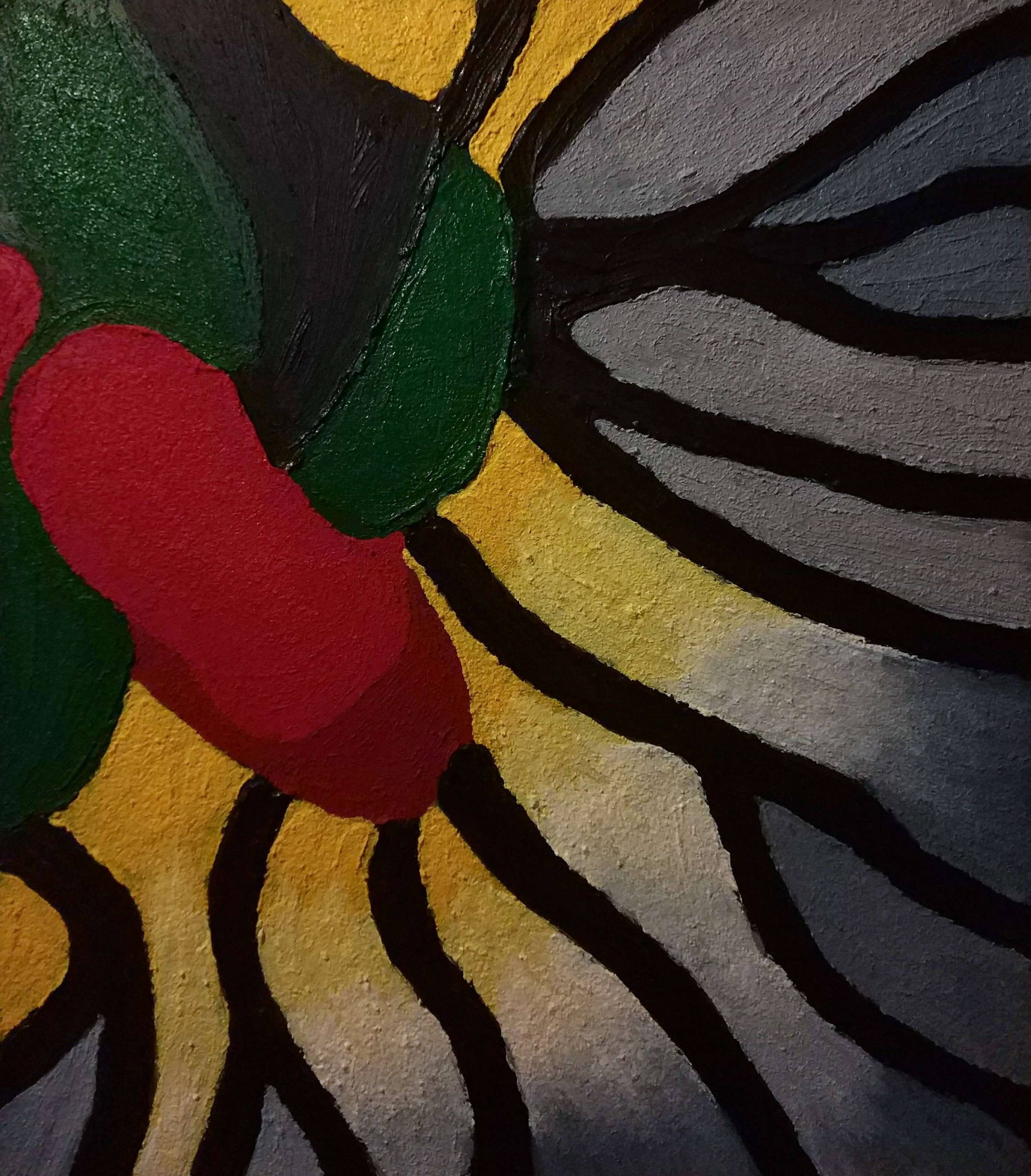 Ten obraz to prawdziwa eksplozja kolorów! Dominuje tutaj żywa czerwień, zieleń, czerń oraz ciepłe odcienie żółci, które tworzą dynamiczną kompozycję, pełną kontrastów i energii. Kształty są zdecydowane, przypominające abstrakcyjne formy organiczne, łączące się w chaotyczną, ale fascynującą układankę. Jest coś w tej pracy, co przyciąga uwagę i zmusza do zastanowienia. Atmosfera obrazu jest żywa, niemalże pulsująca. Odbiorca może poczuć wpływ elementu chaosu, ale też harmonii, jakby obserwował taniec kolorów w niekończącym się rytmie. Styl tej pracy przypomina technikę impasto, w której grubo nakładane farby tworzą wyrazistą fakturę, niemal zachęcającą do dotknięcia. Obraz wywołuje emocje pełne kontrastów. Z jednej strony uspokaja swą harmonią, z drugiej zaś – pobudza, niczym mała eksplozja na płótnie. Patrząc na to dzieło, można poczuć się jak na kolorowej karuzeli. A ja, patrząc na to wszystko, mam takie wrażenie, że kolory tutaj faktycznie "tańczą", jedyne takie dance party w świecie sztuki! Dzieło zachęca do osobistych refleksji, do poszukiwania własnego porządku w tym artystycznym nieładzie. Jakby artysta chciał powiedzieć: "Hej, wszystko jest możliwe!" Moja siostra powiedziała, że wygląda jak kolorowe skrzydła ptaka i kto wie, może faktycznie coś w tym jest.