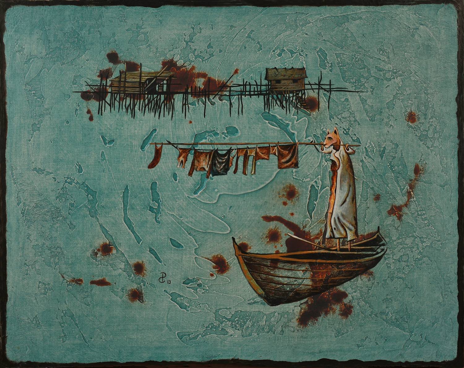Obraz z cyklu No Ma Da, seria płócien, będących dokumentacją i migawkami z podróży, odbywanych przez pochodzącego z Ekwadoru Artystę.