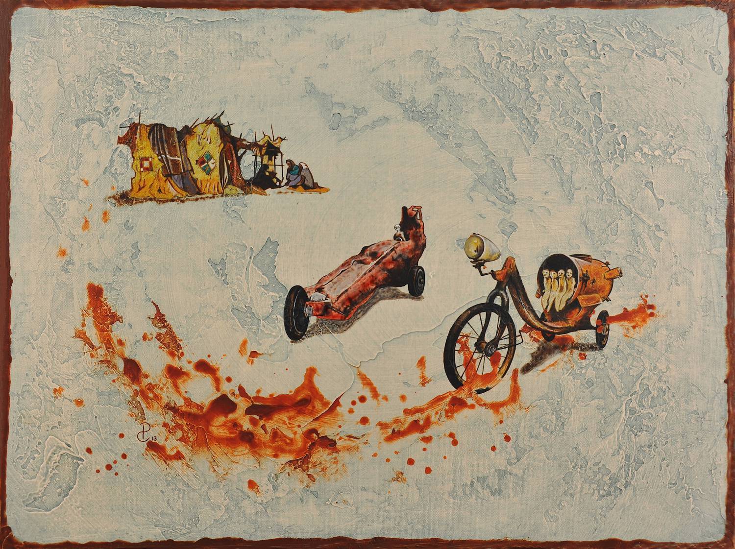Obraz z cyklu No Ma Da, seria płócien, będących dokumentacją i migawkami z podróży, odbywanych przez pochodzącego z Ekwadoru Artystę.