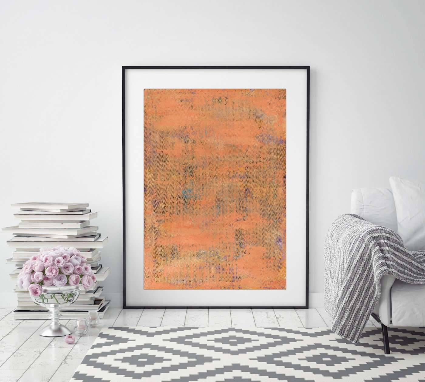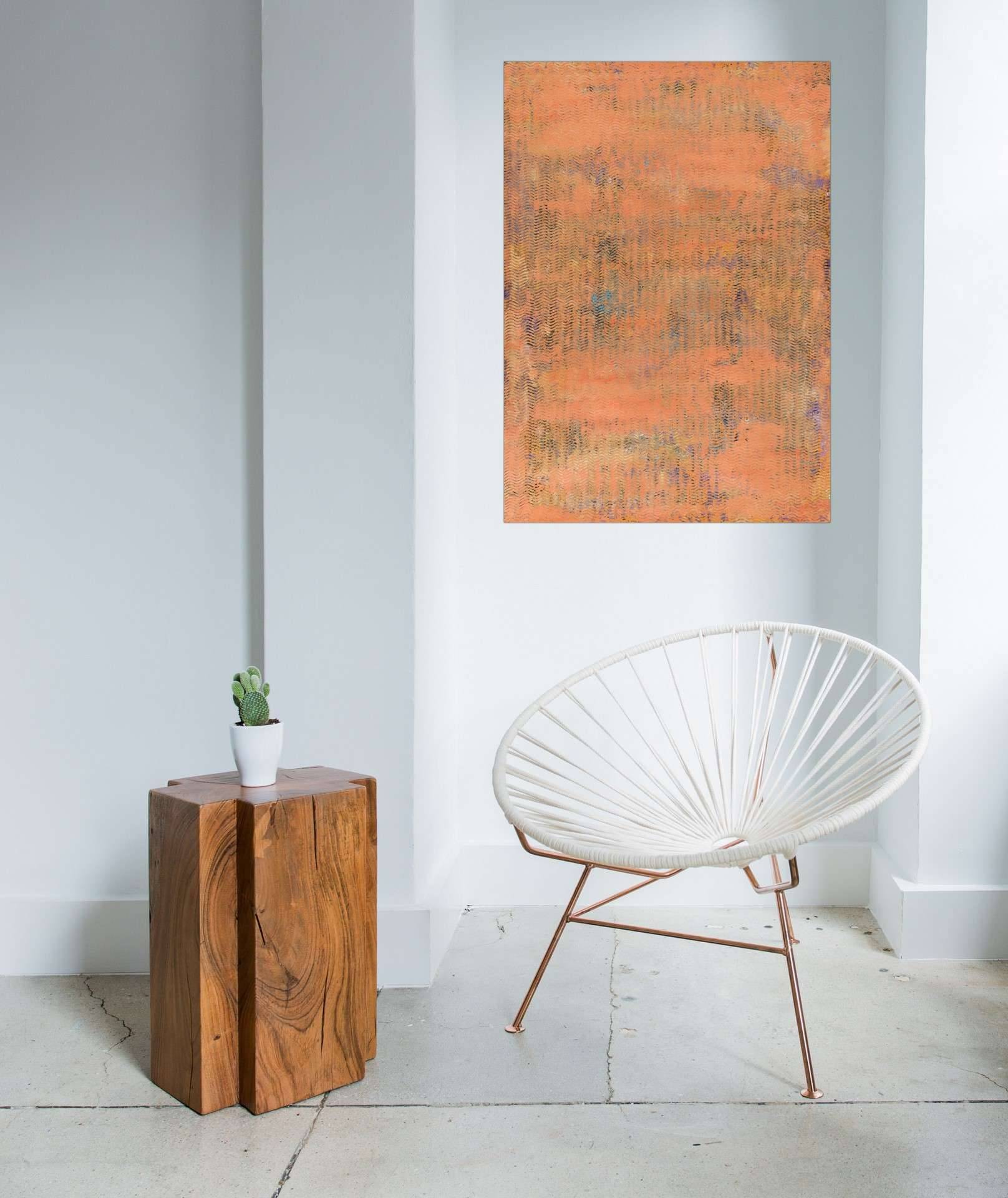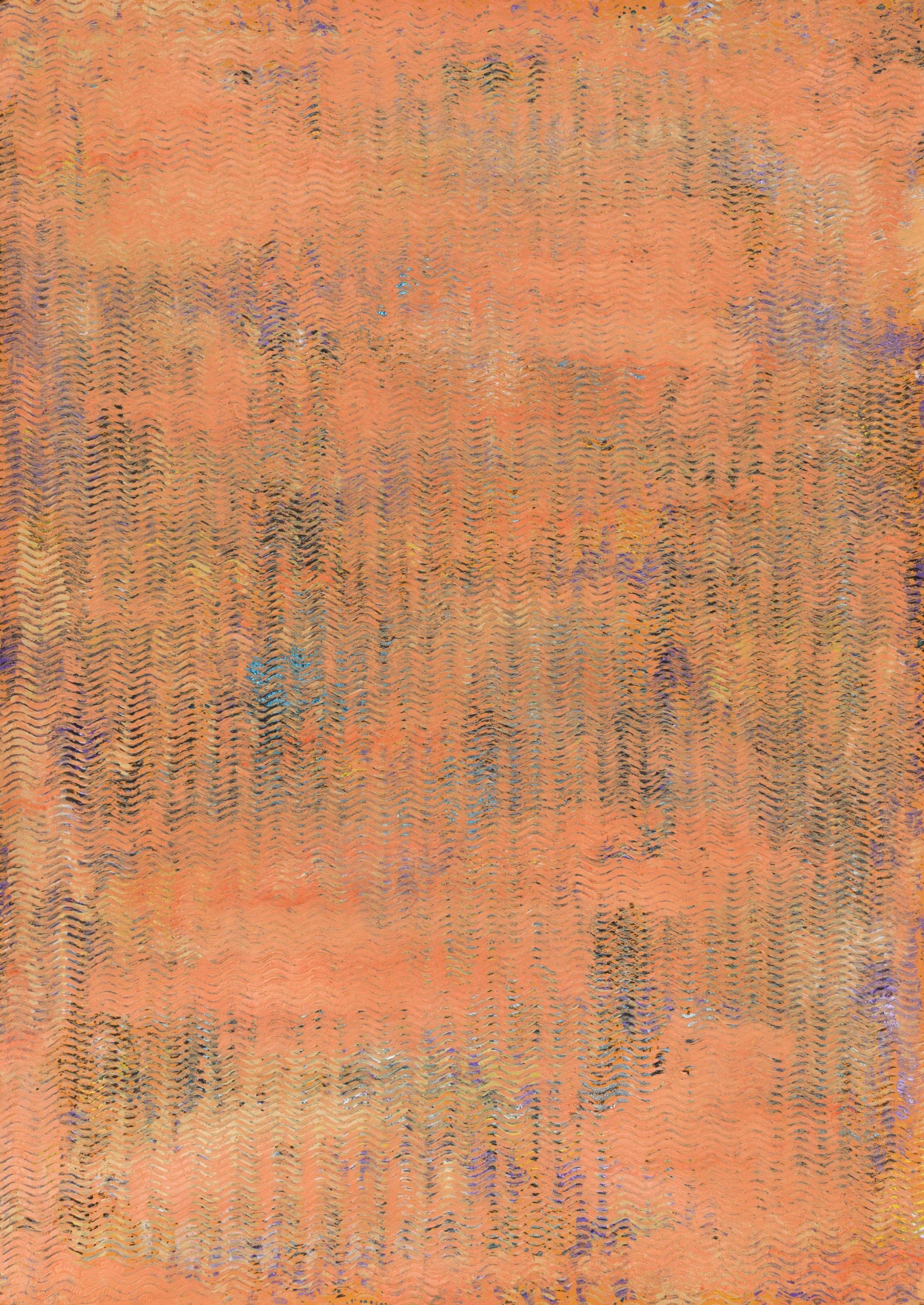 This is a acrylic painting on apricot paper. This work shows the geometrical waves. Finished with a glaze of fixative to protect against sunlight and dust damage. The colors may look a little bit different depending on the screen. This artwork is signed and dated on the back. A signed Certificate Of Authenticity will be included with the artwork. The artwork is painted on paper and it might require a frame. Size: 70 H x 50 W x 0.1 cm, 27.6" x 19.7 x 0.04" Please feel free to contact me if you would like to ask any questions. __________________________________________________ © Pamela Rys