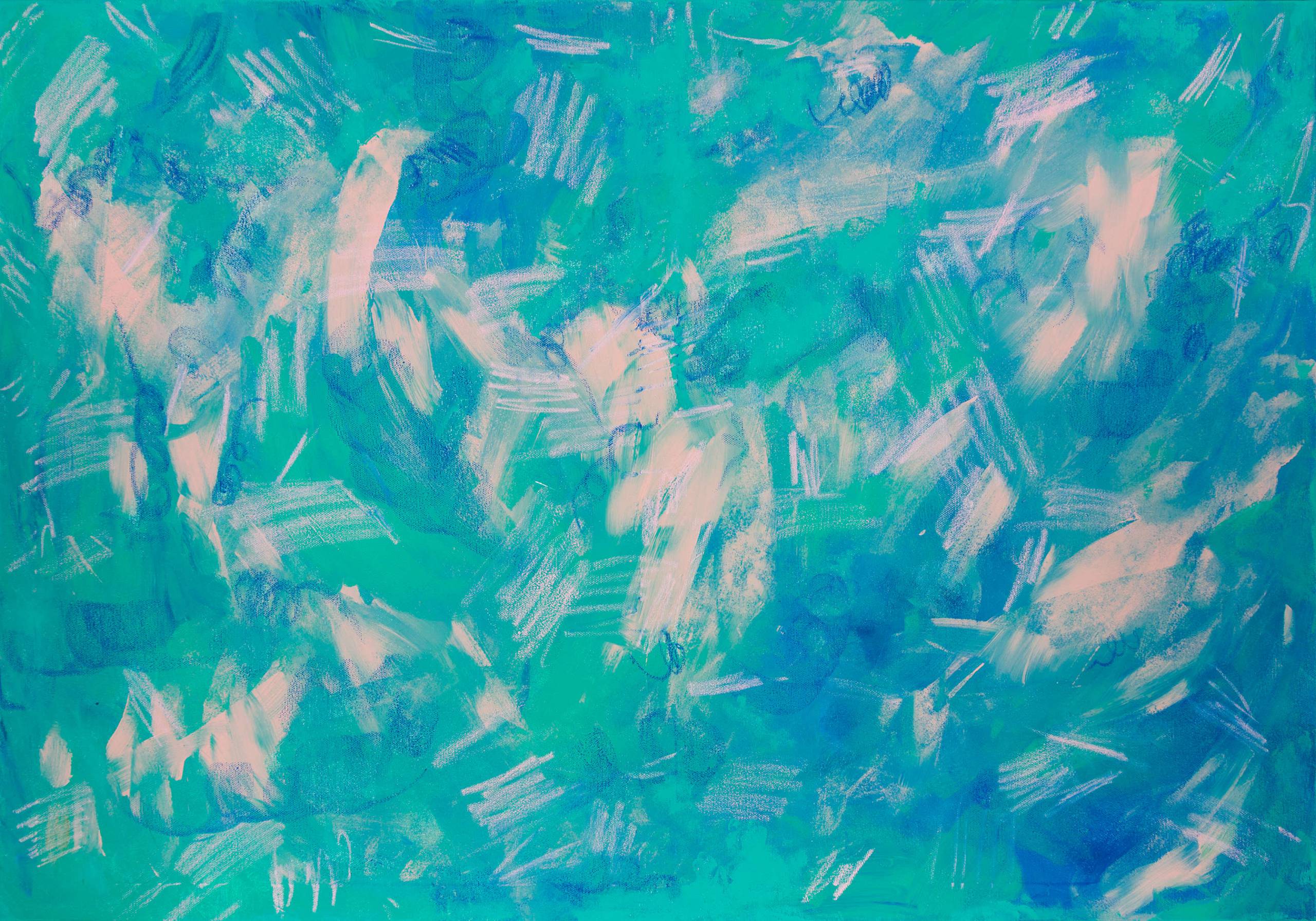 ”Pink Beach” akryl i pastele olejne na płótnie, 2018 Obraz stworzony w współpracy z MK Anisko wymiary: 70 x 100 x 2 cm