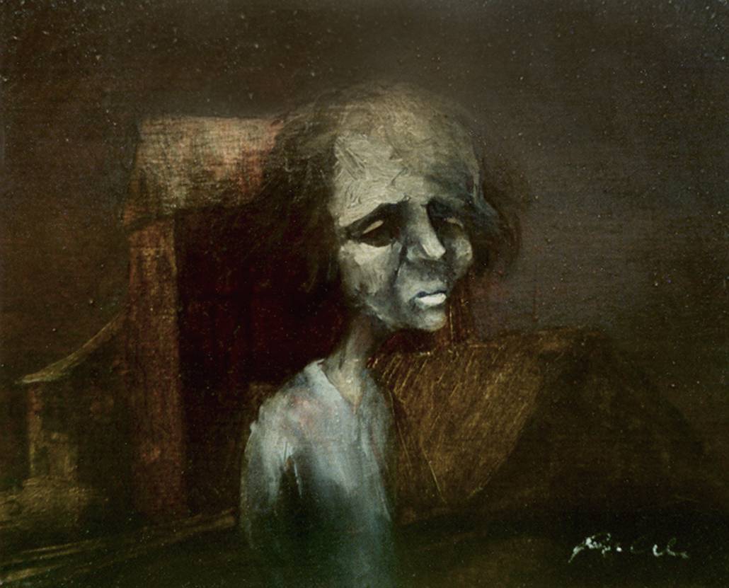 Obraz opiera się na ciemnej, niemal pochmurnej palecie barw, gdzie dominuje brąz, czerń i delikatne tony szarości. W centrum znajduje się postać o wyrazistej, surowej twarzy. Jej kanciaste kształty i wyraz oczu tworzą wrażenie niepokoju, jakby twarz wyrażała historię życia pełną trudów. Kompozycja jest nieco chaotyczna, z owalnym, przyciemnionym tłem, co potęguje tajemniczą atmosferę obrazu. Jeśli miałbym się pokusić o słowo z innego języka, jest to zdecydowanie "haunting". Styl, w jakim wykonano obraz, przypomina ekspresjonizm. Zamaszyste pociągnięcia pędzla i precyzyjne cieniowanie tworzą uczucie głębokiego smutku. Obraz może wywoływać poczucie osamotnienia i melancholii, lecz także fascynować swoim głębokim charakterem. Patrząc na niego, ma się wrażenie, że postać coś nam mówi szeptem, opowiada historie. Czuję dziwne przyciąganie i potrzebę odkrycia tej tajemnicy. To jak patrzenie na ciemne niebo, tylko bardziej. I wyglądają tam jak duchy. Może to jest obraz o duszy zagubionej w czasie, kto wie? To dzieło, które z pewnością nie pozostawia nikogo obojętnym.