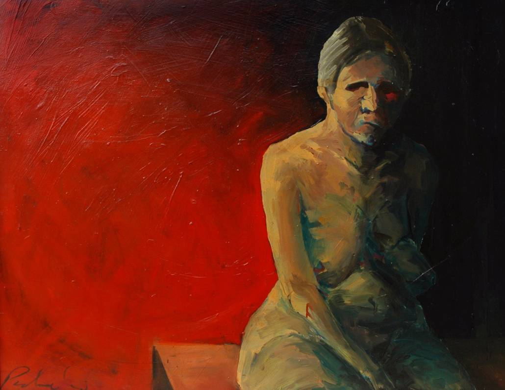Na tym intrygującym obrazie uwagę przykuwa intensywna czerwień tła, która płynnie przechodzi w ciemność, nadając kompozycji dramatyzmu. Postać umieszczona jest po prawej stronie, zarysowana w odcieniach przybrudzonej żółci i brązów. Wyraz jej twarzy jest niemalże nieczytelny, enigmatyczny, jakby ukrywała przed światem swoje emocje. Malarskie pociągnięcia pędzla są energiczne, swobodne, oddające wrażenie ruchu i dynamiki. Atmosfera obrazu jest ciężka, ale i fascynująca. Coś w rodzaju melancholii i zadumy nad przemijaniem. Styl artysty jest śmiały, wieloznaczny, przypomina mi o starych mistrzach, ale z nowoczesnym twistem. Patrząc na ten obraz, czuję lekki niepokój, ale też ciekawość. Co się kryje za tą postacią? It's like peering into someone's soul. A może po prostu kogoś myśli pochłonęły. "To wygląda jak mój sen!" mogłoby powiedzieć dziecko w zachwycie. Kompozycja sprawia, że trudno oderwać wzrok. Kolory, dynamizm i tajemnica sprawiają, że dzieło to jest bardzo angażujące. Na pewno zostanie w pamięci na długo.