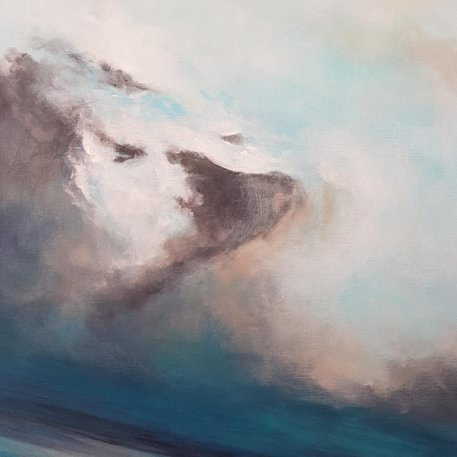 Oto obraz, który z miejsca przykuwa uwagę. Kolory mieszają się w niesamowity sposób: głębokie odcienie turkusu i bieli, a także delikatne przejścia brązów i różu. To wszystko razem tworzy niezapomniany klimat. Jakby wiatr unosił chmury, nagle nadając im kształt fal na wzburzonym morzu. Obraz jest dynamiczny, prawda? Jednocześnie emanuje spokojem, jakby artysta chciał połączyć ze sobą chaos i harmonię. Całość daje poczucie nieokreślonego unoszenia się, niemal jak w "dream". To, co robi artysta, to magia. Pociągnięcia pędzla są zdecydowane, ale miękkie, co nadaje dziełu ulotności. Można poczuć emocje, które zainspirowały twórcę. Jak to jest być gdzieś na granicy marzeń? Obraz ma w sobie coś tajemniczego, co budzi refleksję. Moje serce mówi, że to przypomina mi chwile tuż przed burzą, kiedy powietrze aż drży od napięcia. A może to tylko ja? Hej, zobacz! Chmury wyglądają jak wielkie wata cukrowa, powiedziałby maluch, zacierając ręce. Sztuka jest niesamowita, bo pozwala nam doświadczać różnych emocji. Ten obra