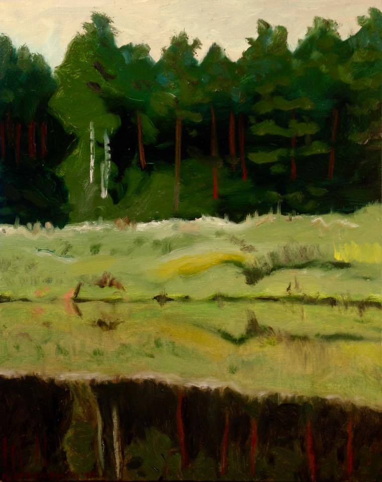 Obraz emanuje spokojem i sielanką letniego dnia. Tło wypełniają soczyste zielenie drzew, które przypominają mi letnie wyprawy do lasu z rodziną. Barwy są żywe, ale jednocześnie delikatnie rozmyte, nadając całości wrażenie ruchu, jakby wiatr bawił się liśćmi. Na pierwszym planie widać odbicie drzew w spokojnej wodzie, co dodaje uczucie harmonii i równowagi. "Wow, dużo zieleni!" - pomyślało by dziecko, patrząc na ten krajobraz. Technika, którą posłużył się artysta, to prawdopodobnie olej lub akryl, z wyraźnymi, śmiałymi pociągnięciami pędzla, które dodają struktury i głębi. Kompozycja jest prosta, ale właśnie to czyni ją magiczną. Spokój bijący z obrazu przenosi nas do innego świata, gdzie czas płynie wolniej. Jest coś hipnotyzującego w tej mgiełce, która otula drzewa w tle. Obraz może wzbudzać nostalgię i tęsknotę za chwilami bliskimi natury, co jest trochę jak throwback do beztroskiej młodości. Idealne tło do kontemplacji i rozmyślań na temat piękna przyrody.