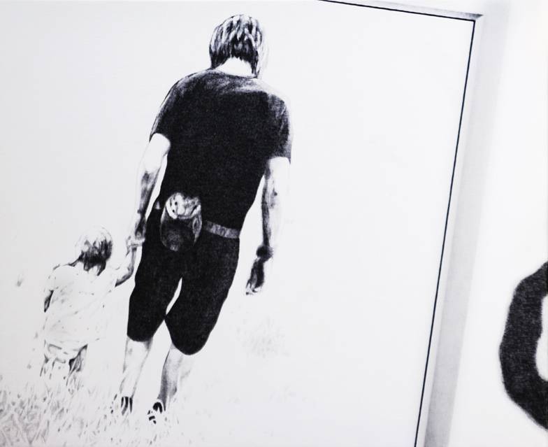 Na obrazie widzimy postacie dorosłego i dziecka idące ręka w rękę. Czarno-biała paleta kolorów nadaje całości nostalgiczny, niemal melancholijny charakter. Kształty postaci są nieco rozmyte, co dodaje im subtelności i delikatności. Kompozycja skierowana jest przede wszystkim na postaci, które kontrastują z jasnym tłem – minimalistycznym i symbolicznym. Atmosfera obrazu jest spokojna, a jednocześnie pełna emocji. Można wyczuć ciepło relacji między postaciami, a sam obraz emanuje poczuciem bezpieczeństwa i bliskości. Styl artystyczny jest prosty, a jednocześnie wyrazisty, z użyciem intensywnych kontrastów, które przyciągają wzrok. Technika, którą posłużył się artysta, skupia się na detalach, a jednocześnie umożliwia swobodną interpretację dzieła. Obraz może wywoływać w widzach różnorodne emocje – od tęsknoty za beztroskimi chwilami dzieciństwa, po radość z małych, codziennych momentów. Yeah, sometimes art just hits you right in the feels. Dla siedmiolatka obraz mógłby mówić: "Tata i ja jesteśmy na spacerze". Osobiście ten obraz przypomina mi momenty z dzieciństwa spędzone z bliskimi. Ta cicha intymność i prostota są naprawdę poruszające.