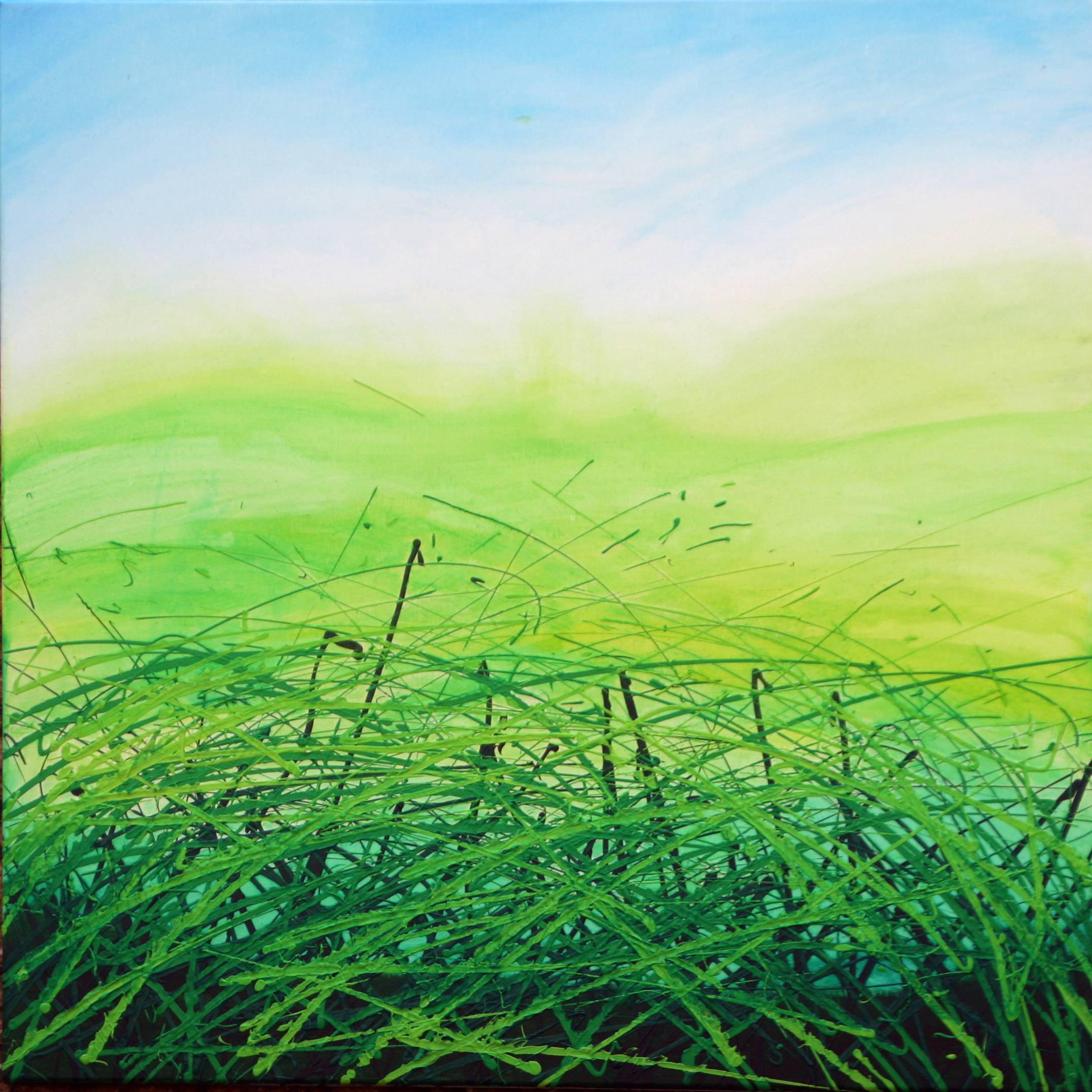 Na obrazie dominuje świeży, soczysty zielony kolor, który przekształca się łagodnie w jasny błękit nieba. Artysta wyraźnie postawił na prostotę i harmonię. Kompozycja jest spokojna, ale jednocześnie pełna życia. Trawy na pierwszym planie są narysowane z dynamicznymi pociągnięciami pędzla, które nadają im lekkości i swobody. Można niemal poczuć, jakby delikatny wiatr poruszał tą zieloną przestrzenią. Atmosfera jest radosna i optymistyczna. Przywołuje na myśl letnie popołudnia na łące. Styl dzieła wydaje się być nieco impresjonistyczny, choć oszczędny w środkach wyrazu. Sugestywność kolorów i form skłania do refleksji nad pięknem natury. A może to tylko sielankowy sen? Trudno powiedzieć. Anyway, to uczucie wolności jest jak świeży powiew. Niektórym ten obraz może kojarzyć się z dzieciństwem, z czasem, kiedy biegaliśmy beztrosko po trawie. "To wygląda jak podwórko u babci!" mogłoby powiedzieć dziecko. Ekspresja i prostota zarazem, jakaś nostalgia miesza się z radością. Przypomina mi, jak ważne jest cieszenie się małymi chwilami, które wcale nie są małe.