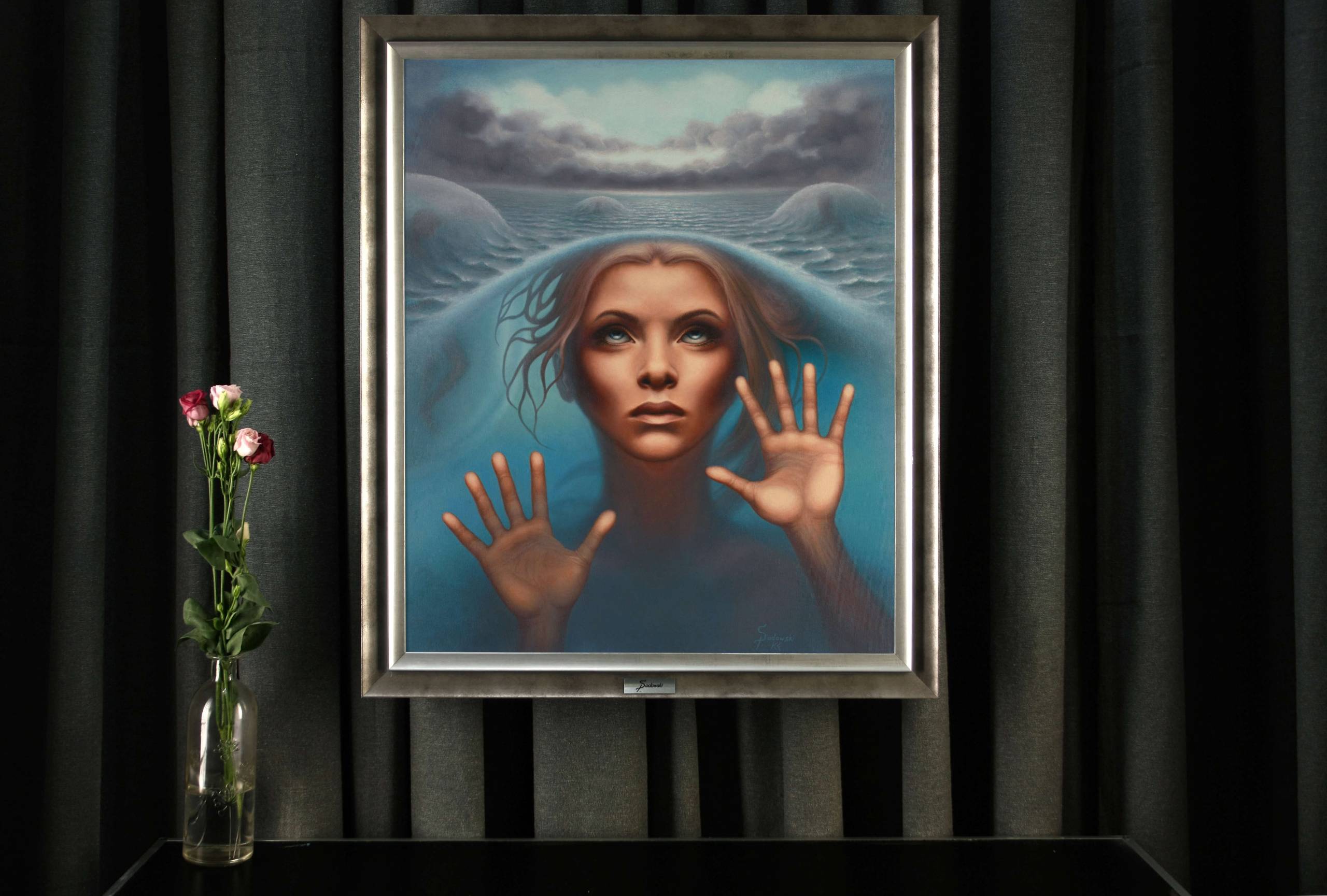 "Bańka filtrująca (informacyjna)" Tematem obrazu jest zjawisko bańki informacyjnej (filtrującej) w którą wpadamy korzystając z min. wyszukiwarek internetowych i sieci społecznościowych. Internet staje się coraz bardziej podzielony na podgrupy ludzi podobnie myślących. Świadomie lub nie, izolujemy się w naszych własnych wirtualnych społecznościach, tworząc swoiste bąble ideologiczne. Otaczamy się informacjami, które potwierdzają nasze wcześniejsze poglądy, cementują je i radykalizują. Taki cyfrowy "efekt potwierdzenia" wpływa negatywnie na wypracowanie kompromisów np. w dyskursie społecznym, gdzie każda ze stron przekonana jest o swojej racji, popada w ekstrema i nie dopuszcza innych, odmiennych poglądów. Długotrwały impas potęguje w nas antagonizmy. Czy jesteśmy świadomi istnienia naszej bańki? Czy potrafimy dostrzec świat poza nią? Czy może pewnego dnia obudzimy się i zorientujemy, że wszyscy wokół mają takie samo zdanie jak my. A świat skonstruowany tylko z naszych myśli, jest światem jednowymiarowym, w którym nic nowego już nas nie czeka. Obraz olejny o formacie 60cm x 50cm (z ramą 68 cm x 57,5 cm) malowany na płótnie naciągniętym na blejtram. Oprawiony w srebrno - grafitową ramę. Gotowy do zawieszenia, ale jeszcze nie zawerniksowany. Sygnatura "Sadowski P. KF" Do obrazu dołączony jest autorski certyfikat autentyczności.