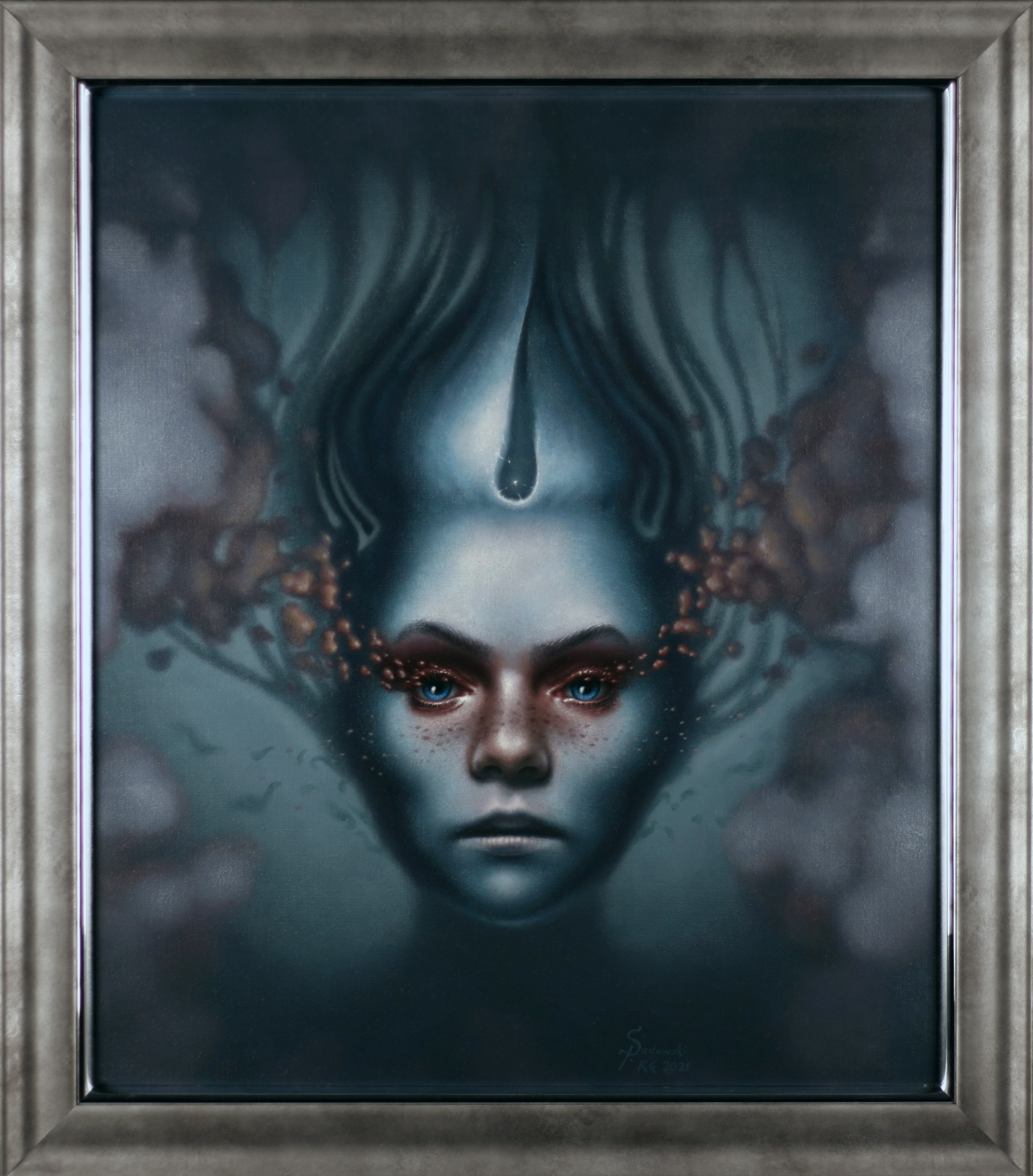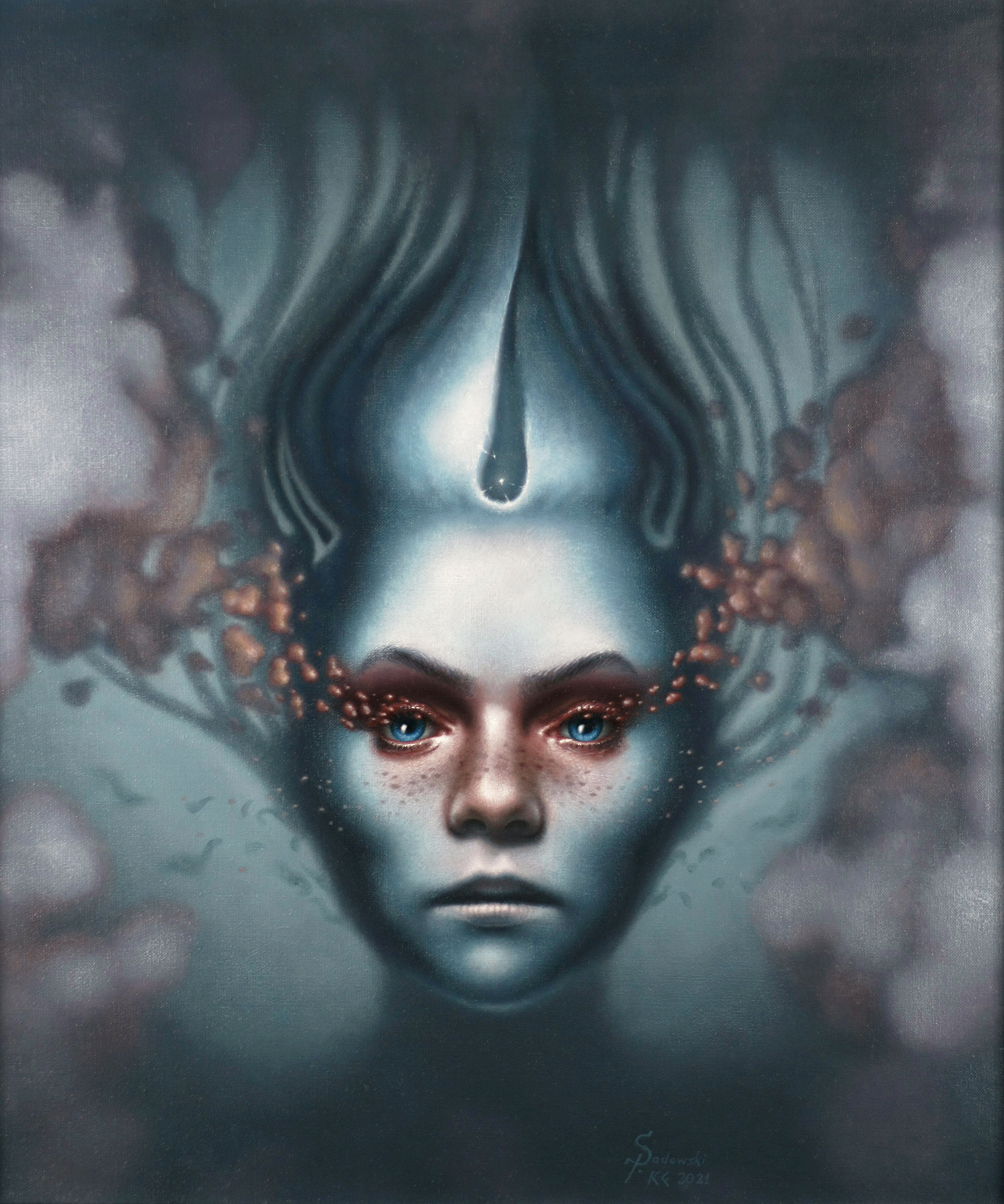 "Entropia" - olej na płótnie, 60 cm x 70 cm Obraz odnosi się do zjawiska entropii. Siły, która rządzi życiem każdego. Sprawia, że porządek zawsze wymaga energii, a bałagan robi się sam. Przenika każde przedsięwzięcie. Wpływa na wiele problemów, z którymi mamy do czynienia i prowadzi do nieładu. Ludzie, jak i rośliny, tworzą zorganizowane i energochłonne struktury, przez co uwalniają wysokie poziomy entropii, jednocześnie sami będąc pod jej wpływem - starzejąc się i rozkładając. Entropia, jak czas, zawsze dąży tylko w jednym kierunku - ku wzrostowi. Specyfikacja: Obraz olejny o formacie 70cm x 60cm (z ramą 80cm x 70cm) malowany na lnianym płótnie naciągniętym na blejtram. Oprawiony. Sygnatura "Sadowski P. KF". Do obrazu dołączony autorski certyfikat autentyczności.