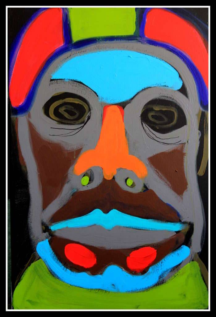 Ten obrazek to prawdziwa eksplozja kolorów. Wygląda jakby ktoś bawił się farbami i pędzlami, tworząc coś, co przypomina twarz, choć w bardzo abstrakcyjnej formie. Zajrzyjmy głębiej, co tu się dzieje. Na pierwszy rzut oka kształty są proste, ale te intensywne kolory robią robotę. Jaskrawe czerwienie, zielonie i niebieskie kąpią się na płótnie, tworząc dynamiczny układ. Przypomina to nieco rysunek dzieciaka, który po prostu chwycił kredki i zaczął rysować, co mu przyszło do głowy. Ma to swój urok! Atmosfera jest dość tajemnicza, jakby twarz patrzyła prosto na nas, mówiąc: "Kim jesteś? Co chcesz?" Styl artysty to mieszanka naiwności z ekspresjonizmem, a technika, jakby malowanie palcami, dodaje niechlujnego, ale wyrazistego akcentu. Patrząc na to dzieło, można czuć zarówno radość z żywych barw, jak i nutkę niepokoju z powodu dziwnych, ogromnych oczu. Bujna wyobraźnia szybko znajduję tu swój kawałek szczęścia. A może to magiczna maska? Who knows! Wrażenie jest takie, że artysta chciał nas zaskoczyć i jednocześnie wciągnąć w kolorowy świat, gdzie wszystko jest możliwe. Obraz może wywołać u odbiorcy zarówno uśmiech, jak i skłonić do refleksji nad naszą percepcją sztuki. Coś tu jest, coś tajemniczego, co sprawia, że nie możemy oderwać wzroku.