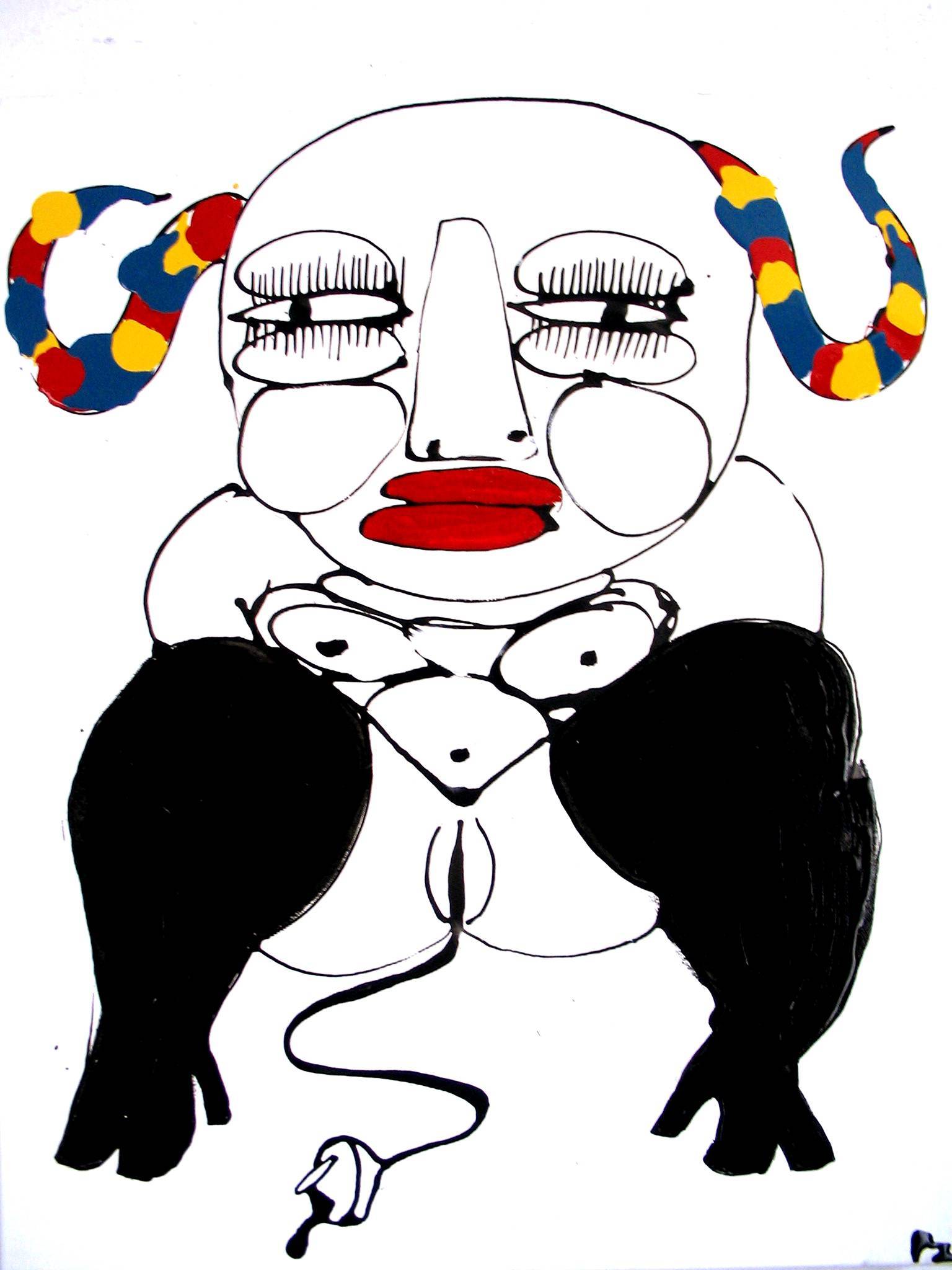 Obraz jest pełen kontrastów i barw, które tworzą intrygującą kompozycję. Na pierwszy rzut oka przykuwa uwagę głowa przypominająca ludzką twarz z zaskakującymi rogami. Te rogi są kolorowe, w plamy niebiesko-czerwono-żółte, które dodają dynamizmu. Duże, czerwone usta i zamknięte oczy przywodzą na myśl senność lub skupienie. Czarno-białe kształty wydają się być ciałem, mają w sobie coś z abstrakcji i ekspresji. Atmosfera obrazu jest nieco zagadkowa, jakby artysta próbował ukryć coś przed widzem. Wzbudza to ciekawość. Styl artysty to coś pomiędzy surrealizmem a pop-artem, z odrobiną humoru przemyconego przez formę. Techniki są luźne, kreska gruba, a kolory żywe i zdecydowane. Pociągnięcia pędzla sprawiają wrażenie mających przemyślany chaos. Obraz może budzić mieszane emocje: od śmiechu przez zdumienie po zadumę nad sobą. Dla kogoś może to być komentarz na temat współczesnego świata. "This is different" - pomyśli oglądający. Dziecięcy umysł może dostrzec w tym dziwnego robota lub potwora z bajki, gdzie wszystko jest możliwe. To obraz, który na długo zostaje w głowie, a ja osobiście myślę, że jest jak sen, który nie chce się skończyć.