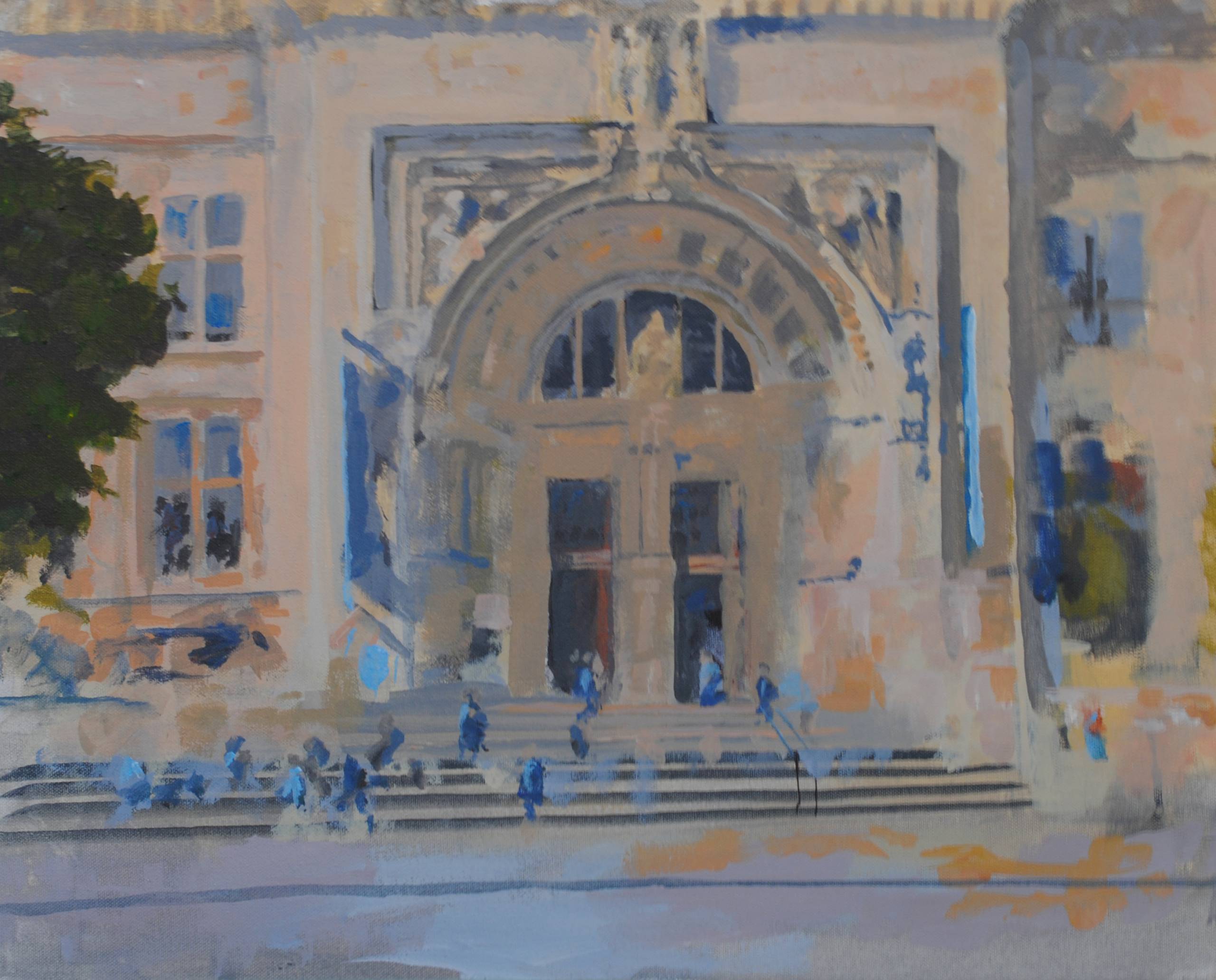 Acrylic on canvas this painting was made in front of the Victoria and Albert Museum London, on a bright summers afternoon. Its an attempt to capture the moment - I'd just returned from Morocco and was struck by similarity of the grand entrance to the museum with the islamic design of the city gates of Marrakech - tourists were constantly talking to me all the time I ws trying to paint