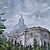 Watercolour on rag paper. Shows the architecture and dome of the baroque church Brompton Oratory in South Kensington, London - after rain with sun breaking through clouds. ... But in a central european forest. I thought it added something - because - for me - although its in London this building has something of Bohemia about it.