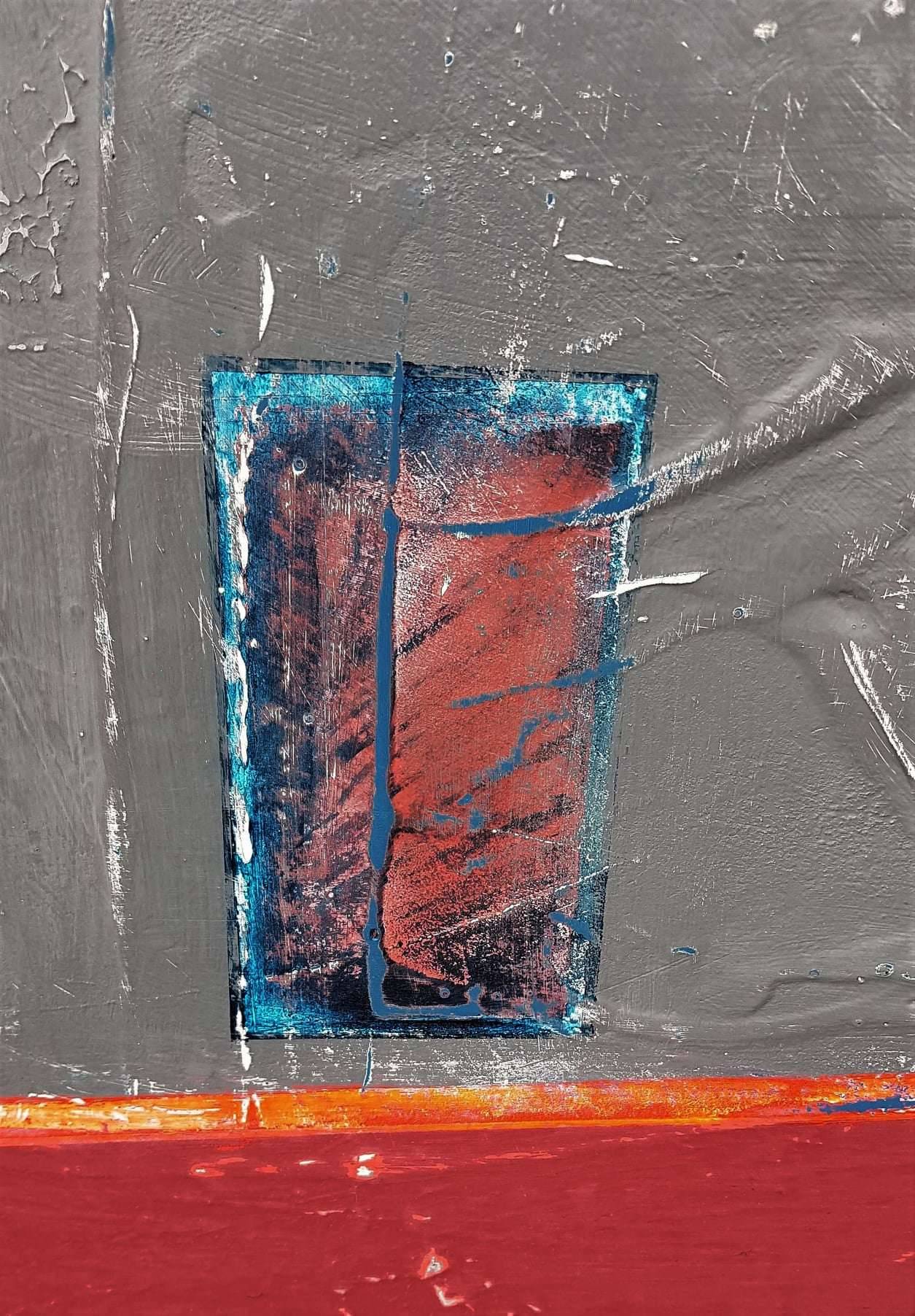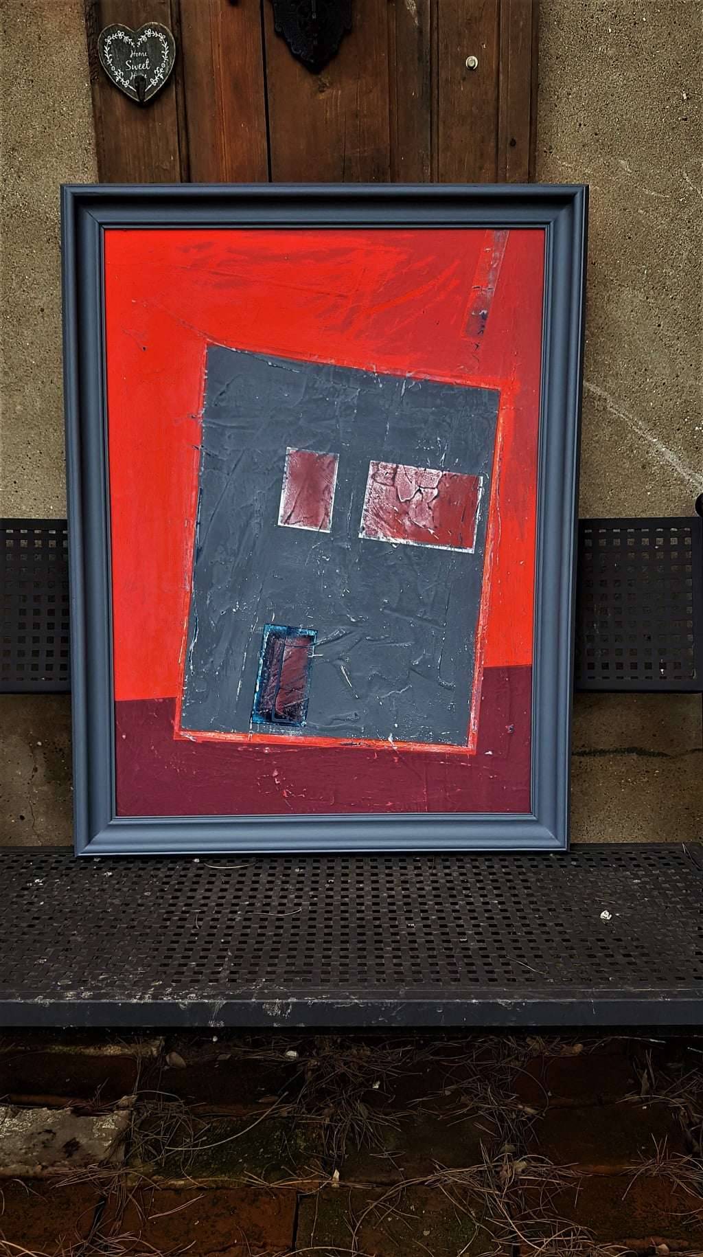 Obraz oprawiony w drewnianą ramę pomalowaną na kolor szary