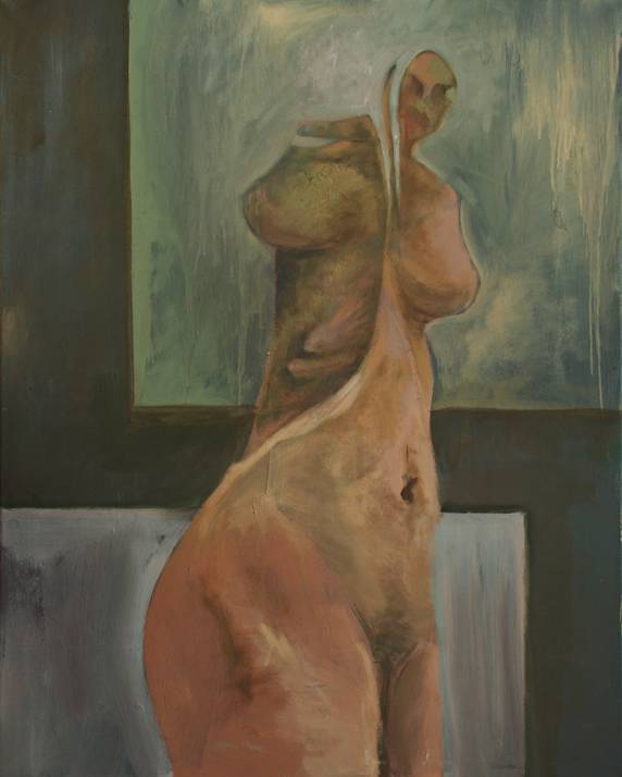 Obraz przedstawia postać ludzką, uchwyconą w dynamicznej kompozycji pełnej kontrastów. Subtelne odcienie zieleni i brązu igrają ze światłem, tworząc tajemniczą aurę. Dominuje tu kolor zgaszonej sepii, który przywołuje na myśl nostalgię za dawnymi czasami. Wyłaniający się z mgły kształt ciała, choć zdeformowany, emanuje pewnego rodzaju ciepłem. Jest w tym coś fascynującego, coś, co przyciąga wzrok. A może to tylko złudzenie? Atmosfera dzieła jest jakby zawieszona w czasie. Delikatne pociągnięcia pędzlem dodają obrazowi uczucia spokoju, ale i odrobiny niepokoju. Ten nastrój zmusza do refleksji. Czy to coś, co mogło być? Może kiedyś było. Look closer. Artysta zastosował technikę olejną, co widać po miękkości i harmonii barw. Stworzenie takiej tekstury wymaga precyzji. Malarz snuje opowieść bez słów, a każda linia przemyka jak zagubiona myśl. Interpretuje się to różnie. Pewnie niektórzy pomyślą, że to historia o ludzkiej kruchej naturze. Dla mnie ten obraz to wspomnienie. Chwilę się wpatruję i widzę coś więcej niż tylko formę. Jest jak stara książka, której każda strona kryje tajemnicę. Ktoś kiedyś mógł powiedzieć, że niebo jest niebieskie, ale to przecież trochę więcej niż to. Ja widzę na tym obrazie to, co czuję. I to jest właśnie piękne.