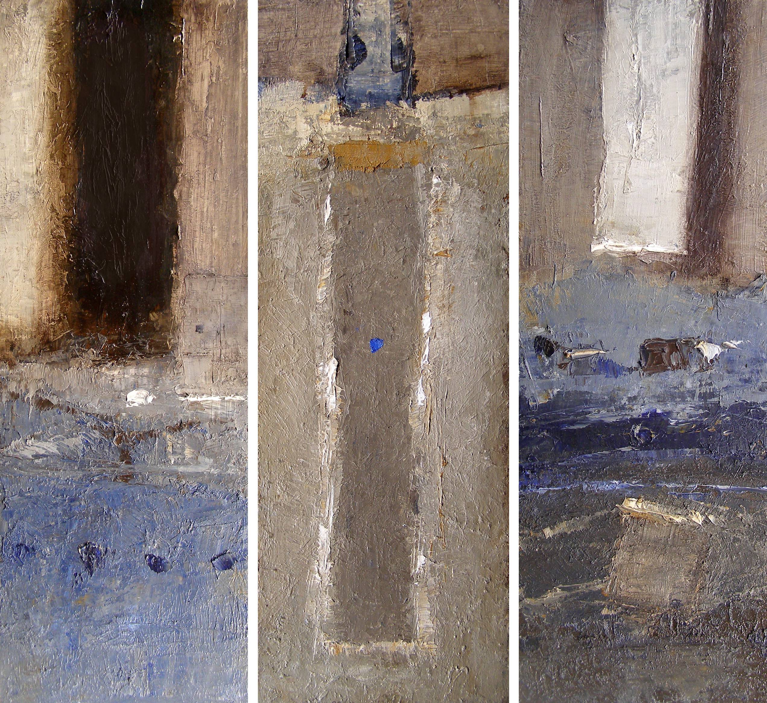 Tryptyk. Obraz olejny malowany na sklejce nabitej na drewnianą ramę.