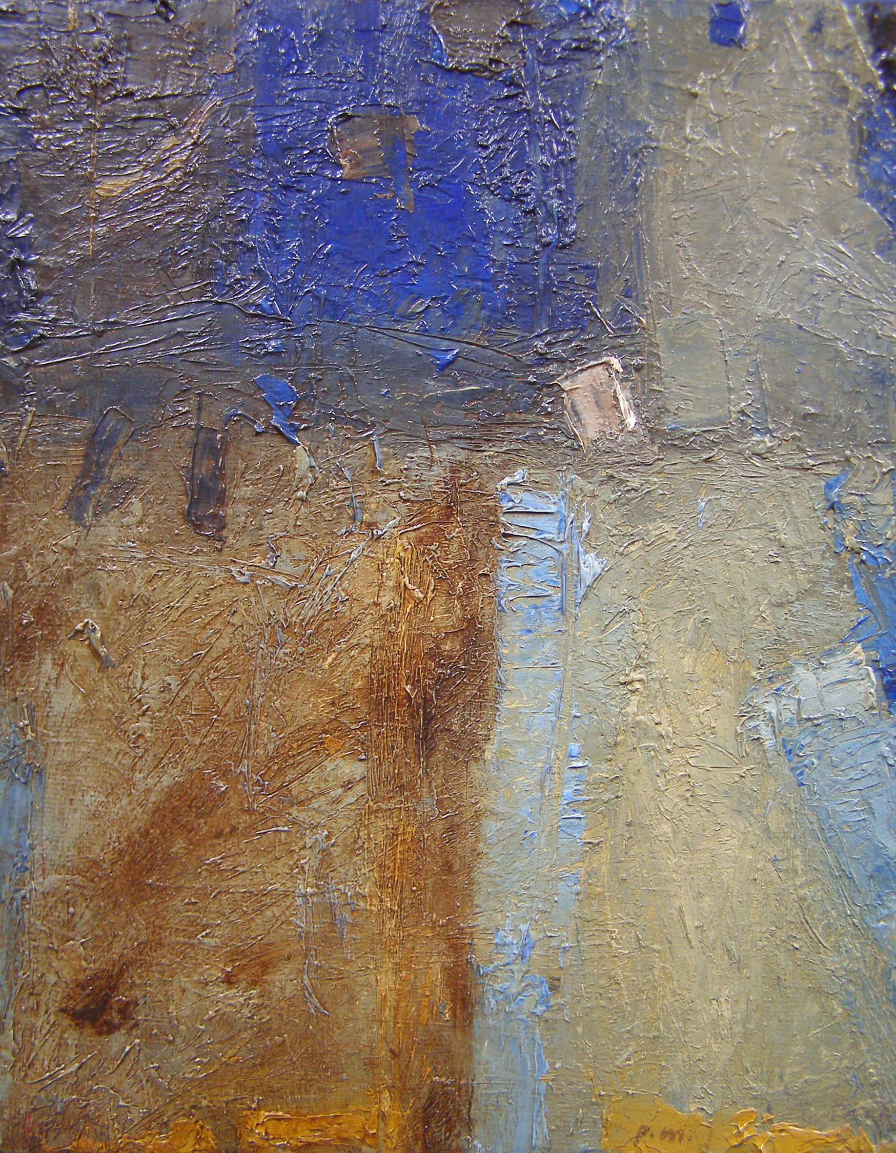 Obraz olejny. Abstrakcja, która nie zrywa do końca z pewnym odczuciem czy nawiązaniem do rzeczywistości. Główną akcję tworzy tu kompozycja, kolor i materia malarska, która jest istotnym dla mnie czynnikiem budowania plastycznej narracji.