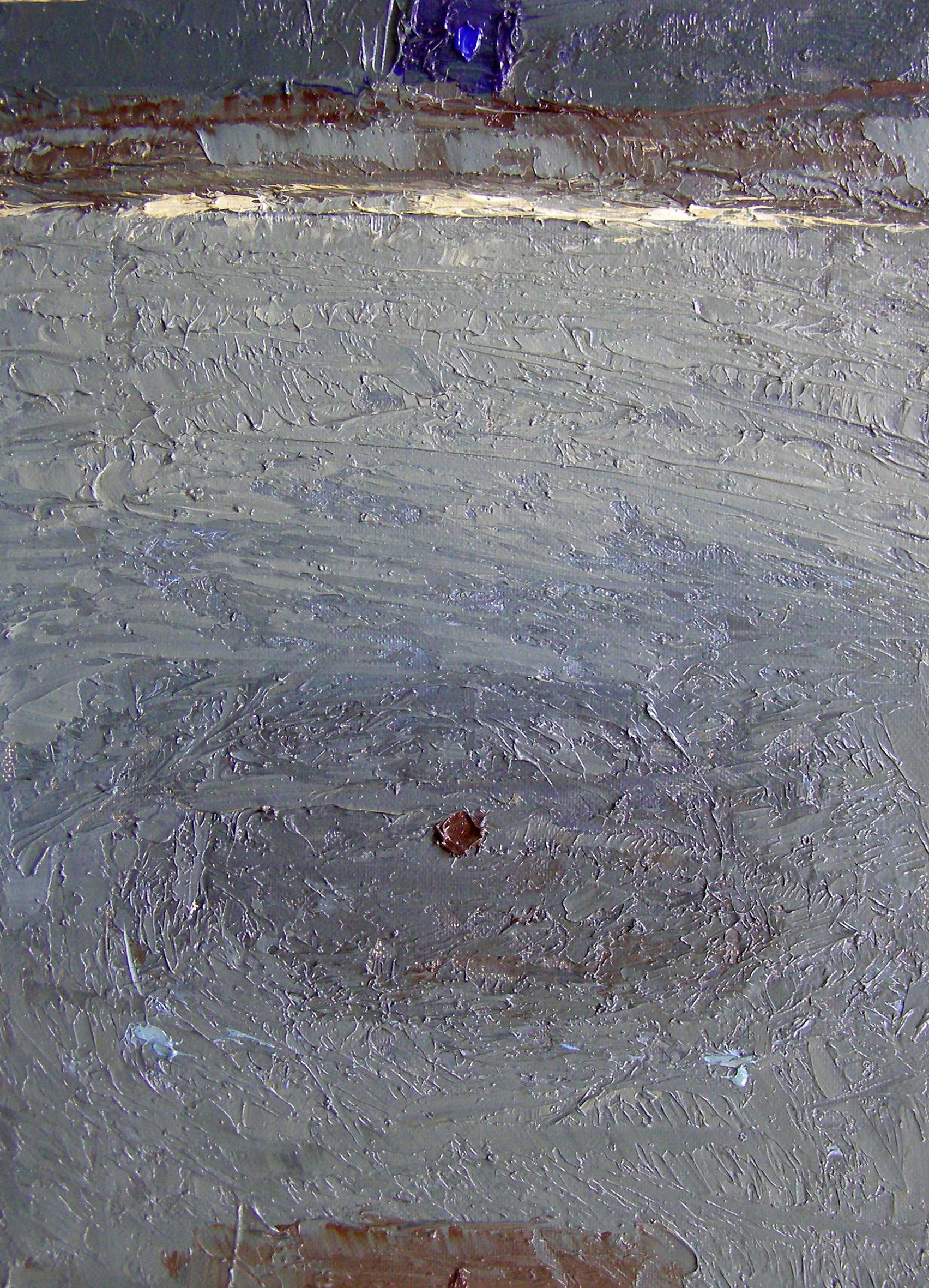 Obraz olejny. Luźna interpretacja pejzażu zmierzająca w stronę abstrakcji.