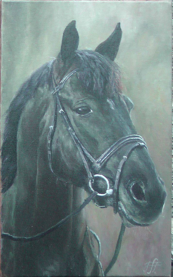Miniatura. Obraz olejny kary koń. Dostępny na zamówienie.