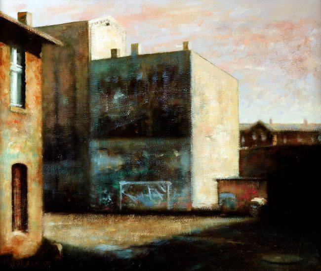 Na obrazie widzimy szarobure miejskie podwórko, otoczone wysokimi murami z cegieł. Kolory ziemiste, z dominacją beżu i przygaszonej czerwieni, wprowadzają nostalgiczną atmosferę. Wydaje się, że słońce oświetla tylko fragmenty ścian, rzucając długie cienie na piaskowy plac. Kompozycja zbudowana jest w taki sposób, że największa ściana budynku stanowi centralny punkt, przyciąga wzrok swoją surowością i oznakami zużycia. Czy kiedykolwiek zastanawiałeś się, ile historii kryje taki stary mur? Artysta zastosował technikę impasto, co widać po fakturze obrazu. Grube nałożenie farby nadaje budynkom chropowatość. Styl realistyczny miesza się z impresjonistycznym podejściem do światła i cienia, dodając całości uroku i tajemnicy. Mieszanka technik sprawia, że pejzaż zyskuje głębię, a przy okazji poczucie melancholii. Obraz może wywoływać uczucie tęsknoty, ale i ciekawość o przeszłość, która wyryta jest w każdym pęknięciu tynku. Patrząc, czuję spokój, ale i pewien smutek, jakby czas stanął w miejscu. Dla dziecka to pewnie byłoby super miejsce na zabawę w chowanego, prawda? "Backyard" wydaje się opustoszały, lecz pełen ukrytych opowieści.