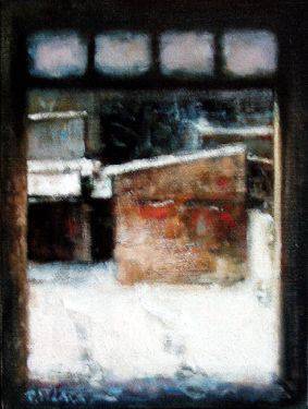 Obraz przedstawia widok przez stare, zmatowiałe okno na zasypane śniegiem podwórko. Kolory są stonowane, dominują szarości, brązy i delikatne odcienie bieli. Kompozycja skupia się na prostych, nieco rozmytych kształtach, które tworzą spokojną, zamyśloną atmosferę. Technika artystyczna sugeruje impresjonizm, z naciskiem na szybkie, swobodne pociągnięcia pędzla. Może aż za swobodne, ale daje to poczucie ruchu. Nastrój emanuje nostalgiczną aurą, jakby przypominał o dawnych, zimowych dniach. Człowiek patrząc w okno, może poczuć tęsknotę za czasami, które minęły. "Czuję się, jakbym patrzył przez okno mojego dzieciństwa!" - takie emocje może wywoływać obraz. Jakby ktoś zrobił układankę z zamglonych wspomnień. Z obrazu bije spokój i ciepło mimo zimowej scenerii, co sprawia, że jest on jednocześnie melancholijny i kojący. W tle wyraźnie przebija się słowo "blur", podkreślając miękki, oniryczny charakter dzieła. Patrząc na to dzieło, można mieć wrażenie, że czas stoi w miejscu, a wszelkie zmartwienia znikają. "To obraz zimy jak z mojego okna!" - tak mógłby powiedzieć 7-latek, bo przecież tak jest, prawda? To wszystko daje wrażenie, że jest się częścią tej cichej, spokojnej chwili.