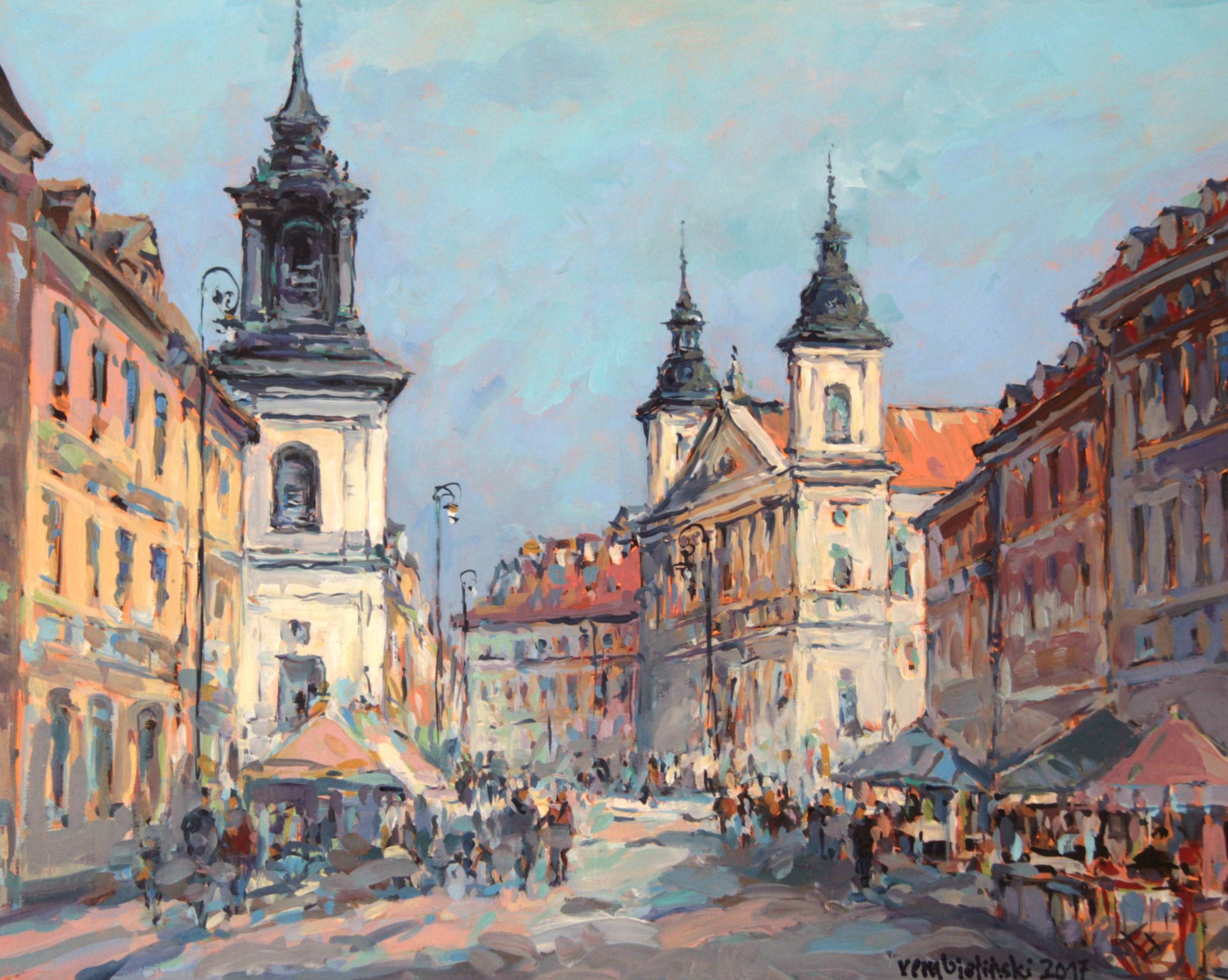 ulica Freta w Warszawie z widokiem na kościół św. Jacka i kościół św. Ducha.