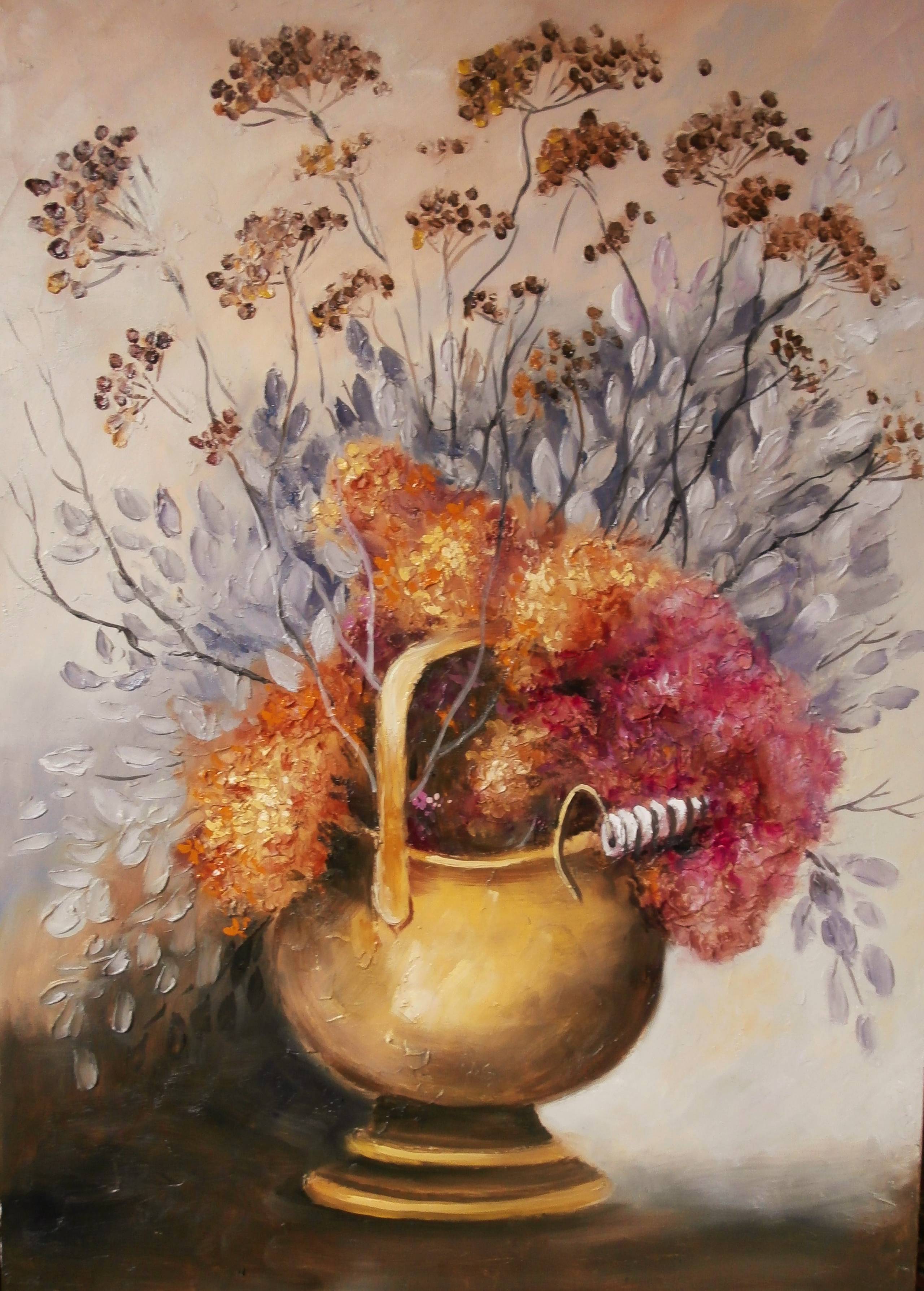 Obraz olejny na płótnie lnianym, malowany szpachelkami (gruba faktura) oraz pędzlami.