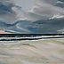 Na tym obrazie dominują odcienie szarości i błękitów, tworząc dynamiczną i nieco surową kompozycję. Niskie, gęste chmury przetaczają się nad horyzontem, jakby szykowały się do oberwania chmury. Morze jest ciemne, niemal czarne, z falami uderzającymi o brzeg niczym śpiew oceanicznej symfonii. Plaża, przedstawiona szerokimi, rytmicznymi pociągnięciami pędzla, jest niemal pusta, co wzmaga poczucie samotności i oczekiwania. Nastrój dzieła jest przejmujący, emanujący tęsknotą i spokojem przed burzą. Artysta w zręczny sposób uchwyca moment zawieszenia, używając impastowej techniki, która dodaje obrazowi tekstury. Faktura farby jest wyraźna, można niemal poczuć wiatr na twarzy. Patrząc na to dzieło, czuję melancholię, jakby nadciągający sztorm był metaforą nadchodzących zmian w życiu. Czasem myślę, że nic nie jest bardziej magiczne niż chwila przed burzą. A może potwór w chmurach się ukrył? To zasiewa w odbiorcy nastrój refleksji nad nieprzewidywalnością natury (i życia). Szary, ale lovely w swej prostocie.