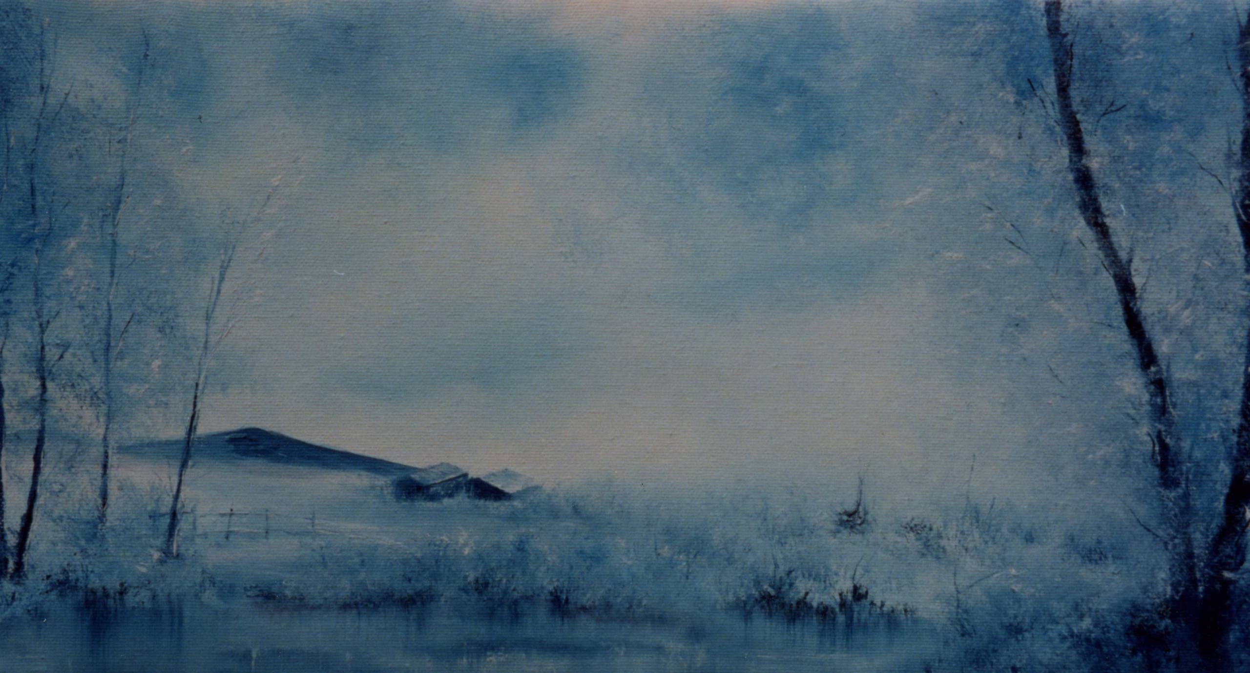 Na tym obrazie dominuje chłodna paleta kolorów: błękity, szarości i subtelne odcienie bieli. Drzewa stoją po bokach, ich gałęzie wydają się niemalże szkieletem w tej zimowej scenie. Krajobraz jest spowity delikatną mgłą, która nadaje mu niemal magicznego klimatu. Domki w oddali są ledwo widoczne, tworząc poczucie dystansu i nostalgii. Całość tworzy atmosferę ciszy i spokoju, jakby czas się zatrzymał. Artysta zastosował łagodne pociągnięcia pędzla, które idealnie oddają lekkość i efemeryczność scenerii. Obraz emanuje melancholią, budząc w obserwatorze poczucie zadumy. Można poczuć zimowy chłód, ale także ukrytą w nim intymność. To miejsce, gdzie można się zaszyć z myślami. Ja myślę, że tam jest bardzo zimno, ale pięknie. Ten pejzaż przyciąga uwagę swoją prostotą i jednoczesną głębią emocjonalną. To tak, jakby ktoś nas zaprosil do snu pełnego tajemnicy. Artysta uchwycił moment, kiedy cisza natury mówi więcej niż tysiąc słów. Magic.