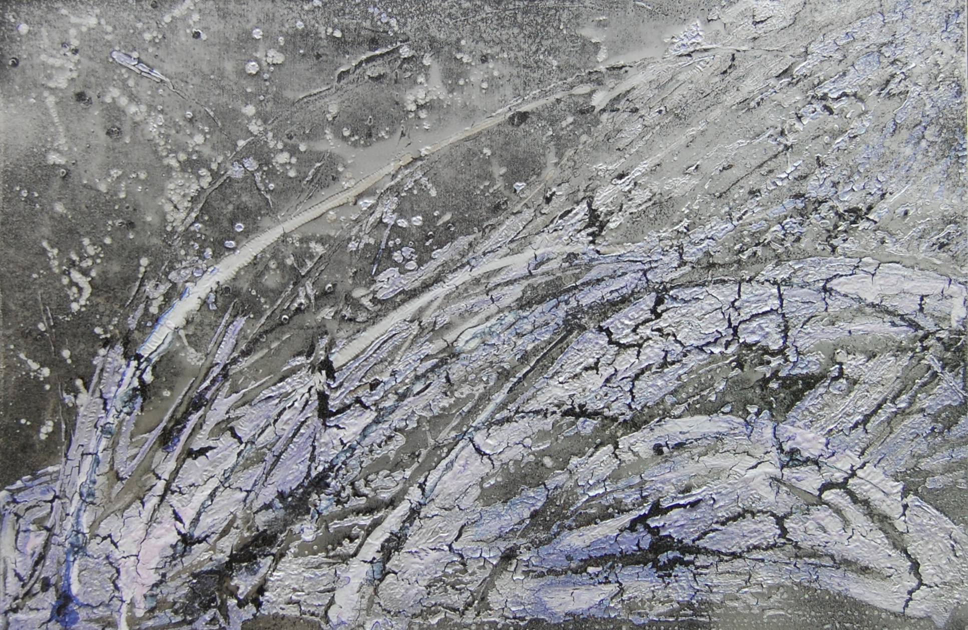 New artwork in the Argentum wave collection :- A textured abstracted wave painting onto a box canvas. Innovative use of mixed media, silver metallic paint and violet and white acrylic has been used to create stunning visual effects resulting in a highly original artwork. The interior image is for illustration purposes only and is not exactly to scale. Signed on the reverse. Should this piece be purchased as a gift the artist is happy to include a handwritten calligraphic postcard with a description of the work, or a personalised greeting.