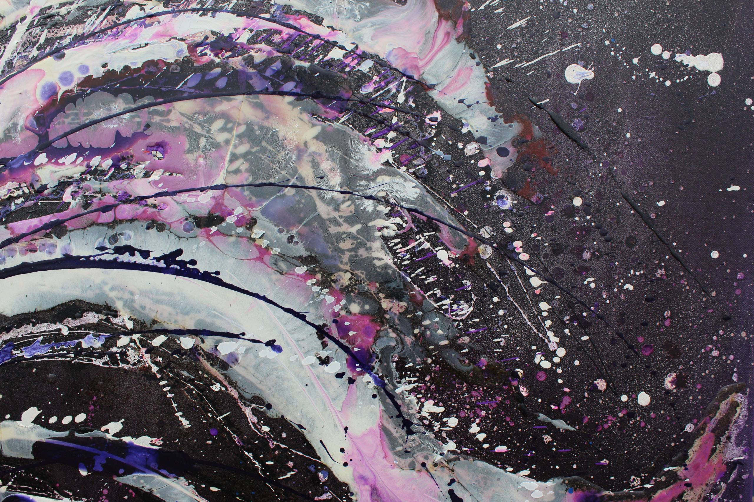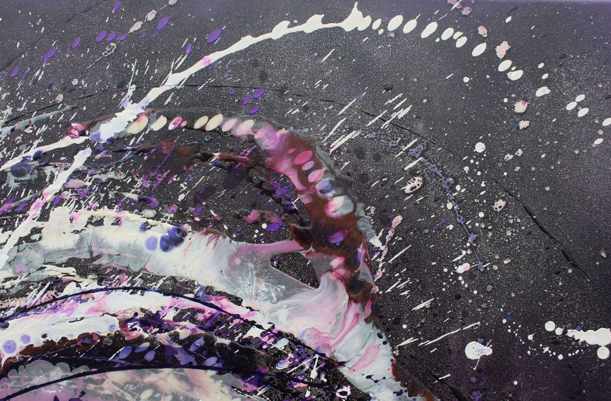 This painting explores and celebrates the vibrant colours and turbulent movement of the ocean. Innovative use of mixed media and much layering of pigments and washes are used to create magical maritime colours and shapes. Looking through the waves one sees the troubled waters moving into a smooth calming harmonious sequence of the elements. This textured abstract is painted on a slimline canvas and is strung, ready to hang. The central part of the painting is coated in gloss resin which adds an extra dimension to the level of detail. Should this be purchased as a gift, the artist is happy to provide a personalised calligraphically written note to accompany it.