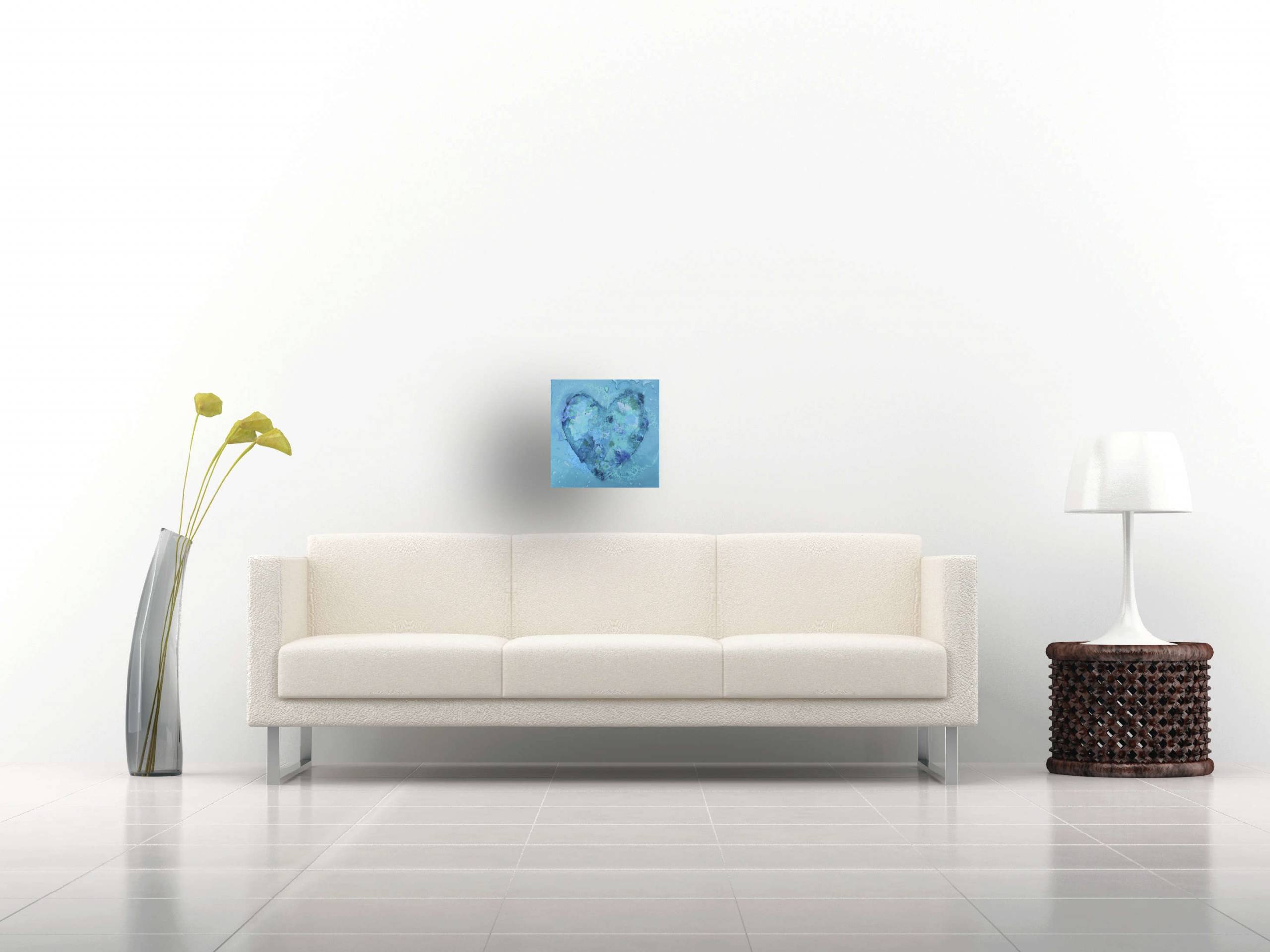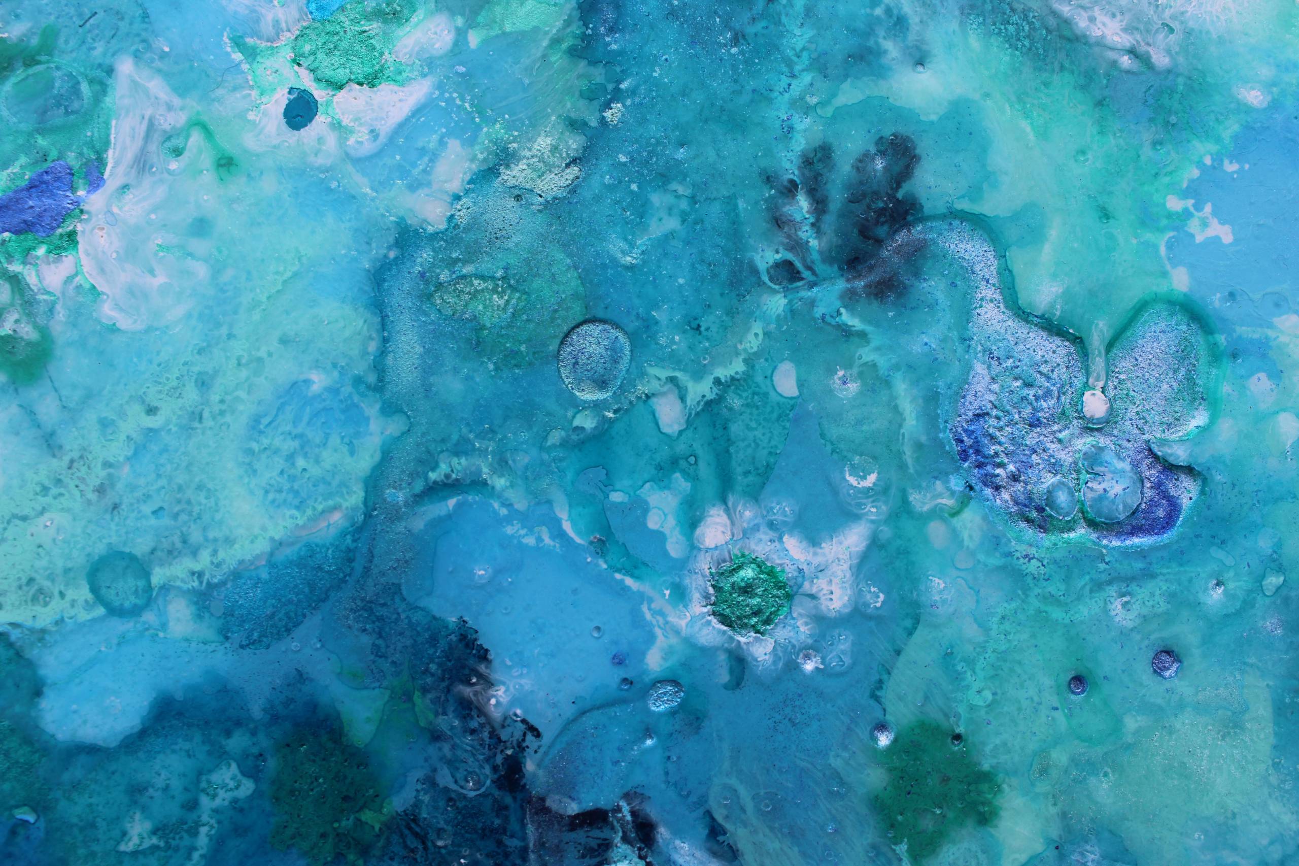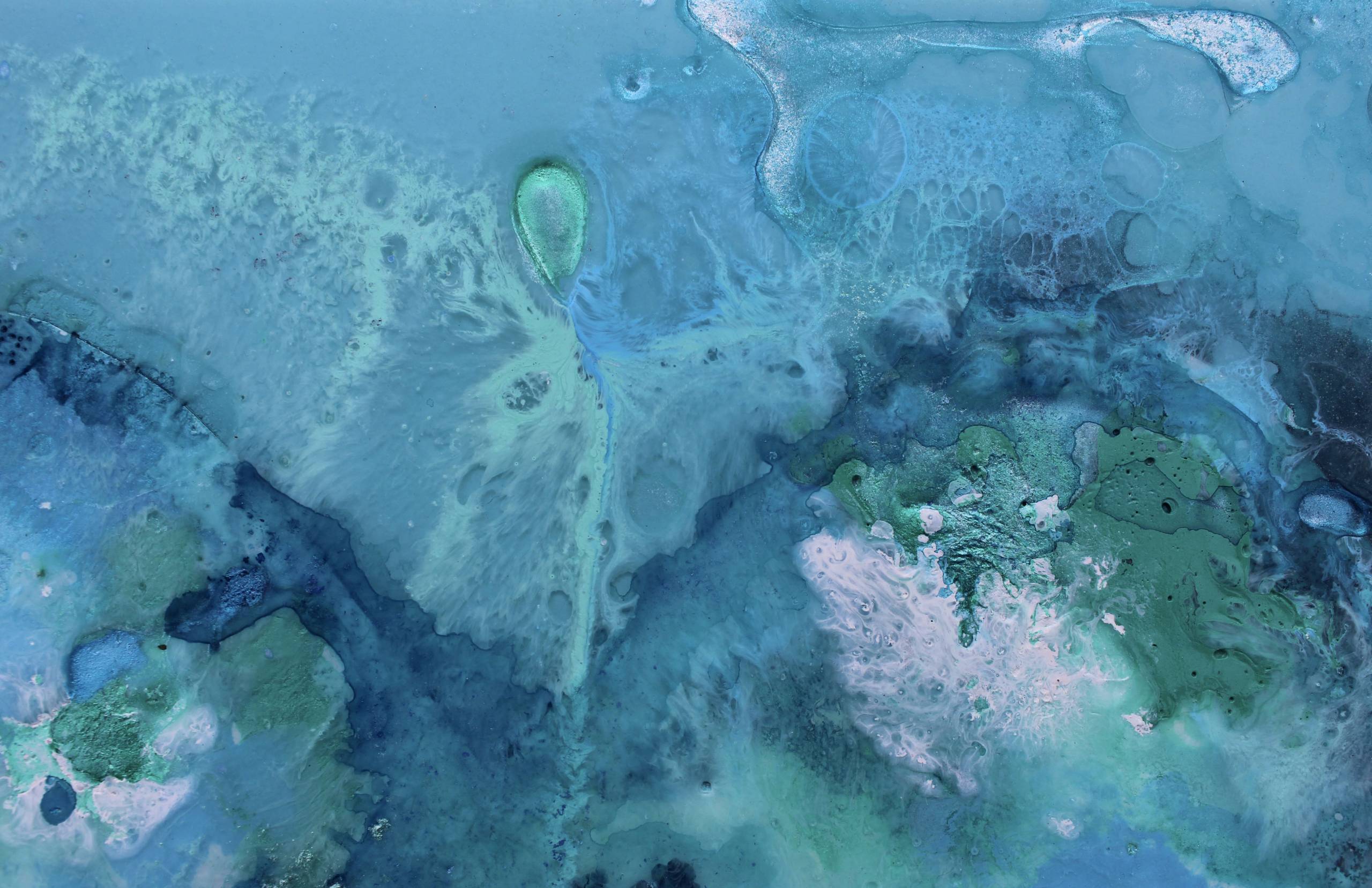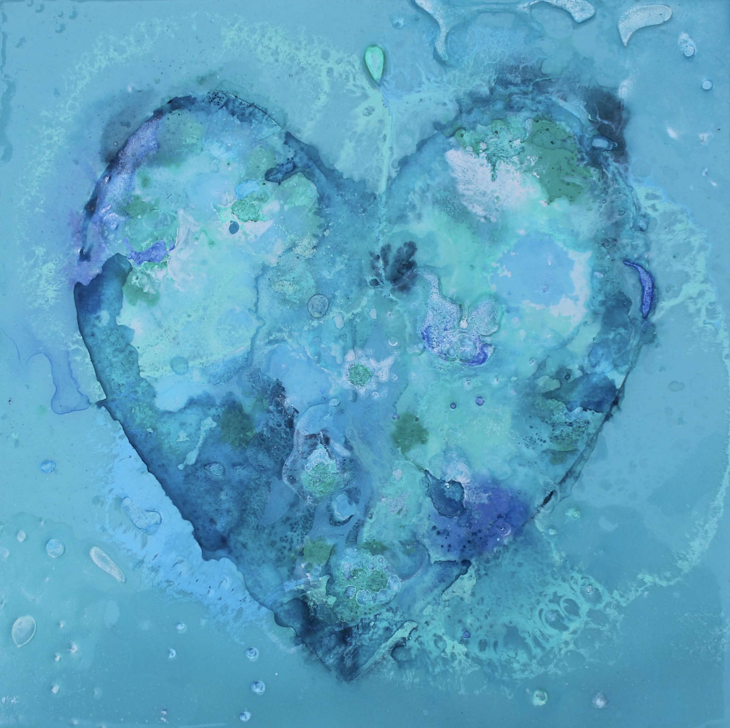 McCullock's aluminium resin paintings are constructed in layers. Initially in a gestural manner, then becoming more complex with each layer. By adding colour and cells she partly obscures the metal base. The final layer is purely creating the unique texture- the defining indicator of Rachel's work. The rich deep blues, turquoise and iridescent inks of this art are mood enhancing and have the feel good factor. The title is a nod to these unique times. The surface of the resin has texture and pits giving a 3 dimensional effect. This artwork is signed on the reverse . It is presented unframed. A plain unglazed box frame is recommended by the artist, alternatively it can be hung using a "Command" self adhesive velcro strip to enable the artwork to be hung unframed.
