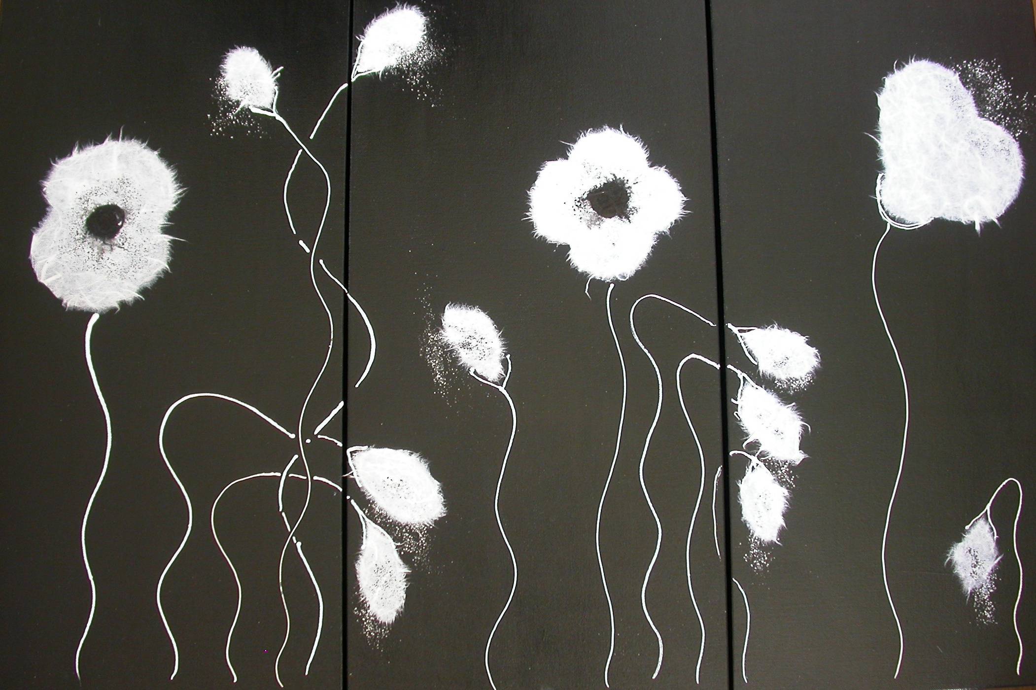 Na obrazie widzimy delikatne, białe dmuchawce na tle głębokiej czerni. Te ulotne kształty przypominają puszyste kule, które wyglądają jakby miały zaraz odlecieć. Linie łodyg są cienkie i wiją się jak tancerze, prowadząc wzrok w górę, gdzie kwiaty zdają się unosić. Kontrast pomiędzy czernią a bielą jest wyrazisty, co dodaje kompozycji graficznej dynamiki. Atmosfera jest wręcz magiczna. Jakby czas stanął w miejscu, chwila ulotna, a jednak tak trwała. Artysta bawi się prostotą i minimalizmem, co daje ogromny efekt. Czuję, że to uczucie spokoju i lekkości przepełnia cały obraz. Look at those wonderful lines! Mogłoby się zdawać, że te kwiaty szepczą sekretne opowieści o wietrze i wolności. Taki obraz może wzbudzać nostalgiczne wspomnienia letnich dni i dziecięcych zabaw na łące. Patrząc na niego, aż chciałoby się wziąć głęboki oddech i po prostu być.