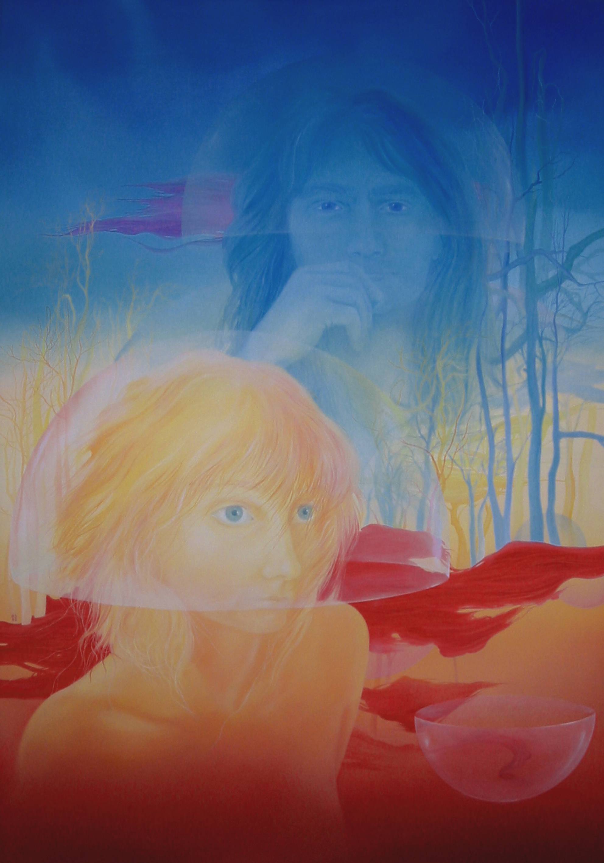 RADEK INNY - obraz olejny namalowany w 1992 roku techniką bezfakturową, bez śladów pędzla, bez użycia technik natryskowych na szlifowanym i polerowanym płótnie, idealnie gładki, perfekcyjna technika, subtelne przenikanie barw, mnóstwo detali i szczegółów