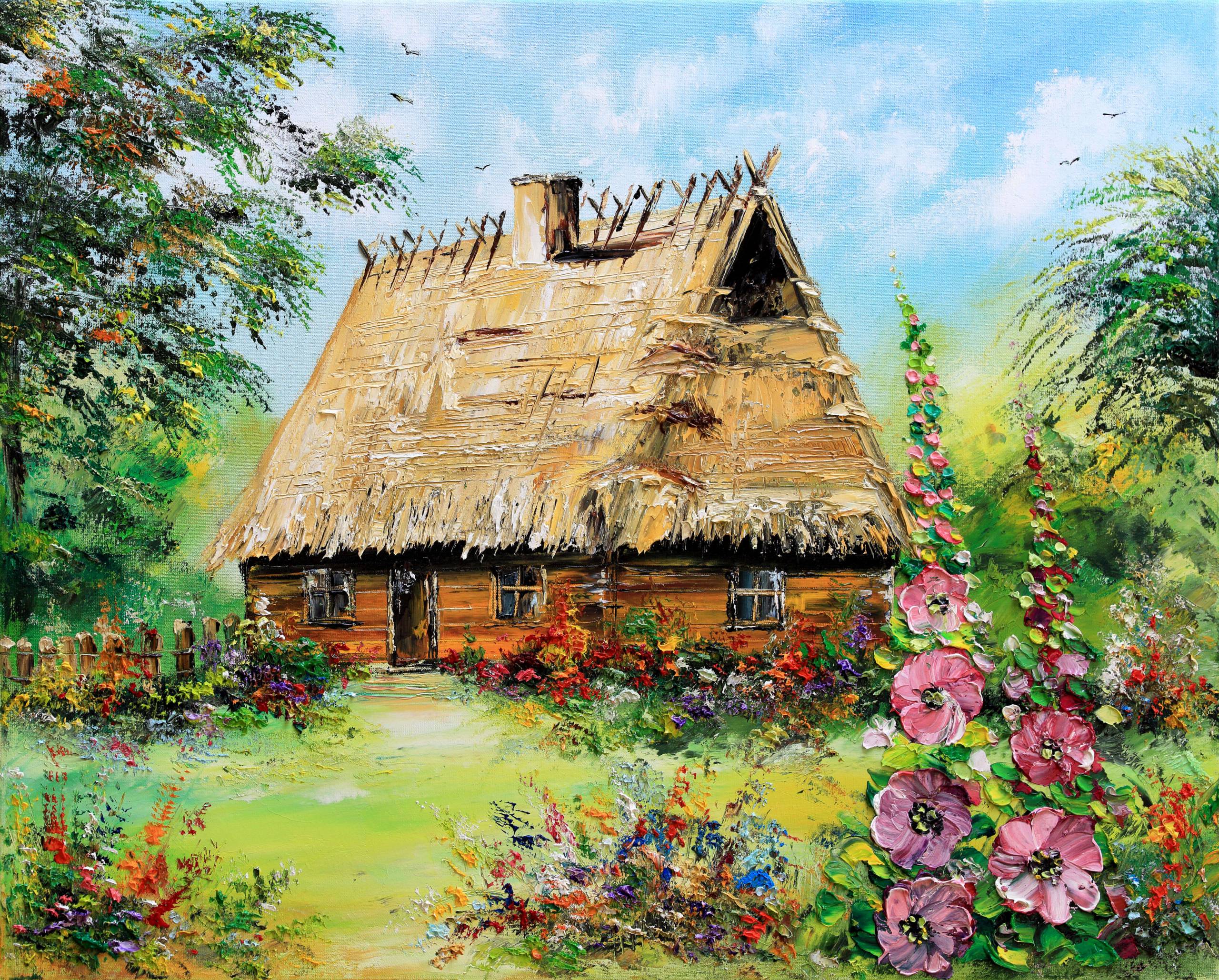 CHATA Z MALWAMI - obraz olejny 50x40 cm