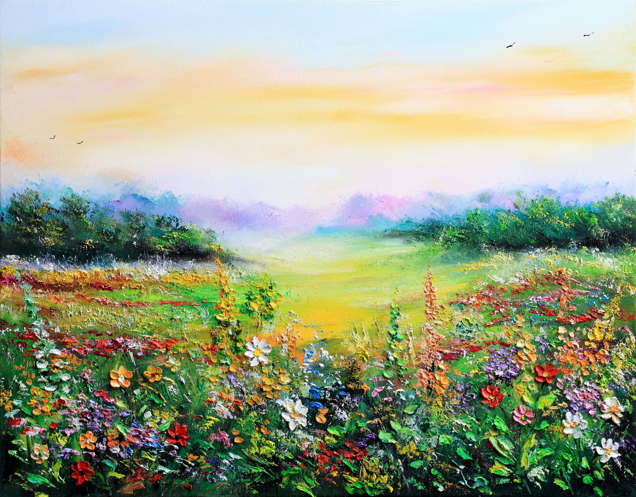 ŁĄKA O ŚWICIE obraz olejny 50x40cm