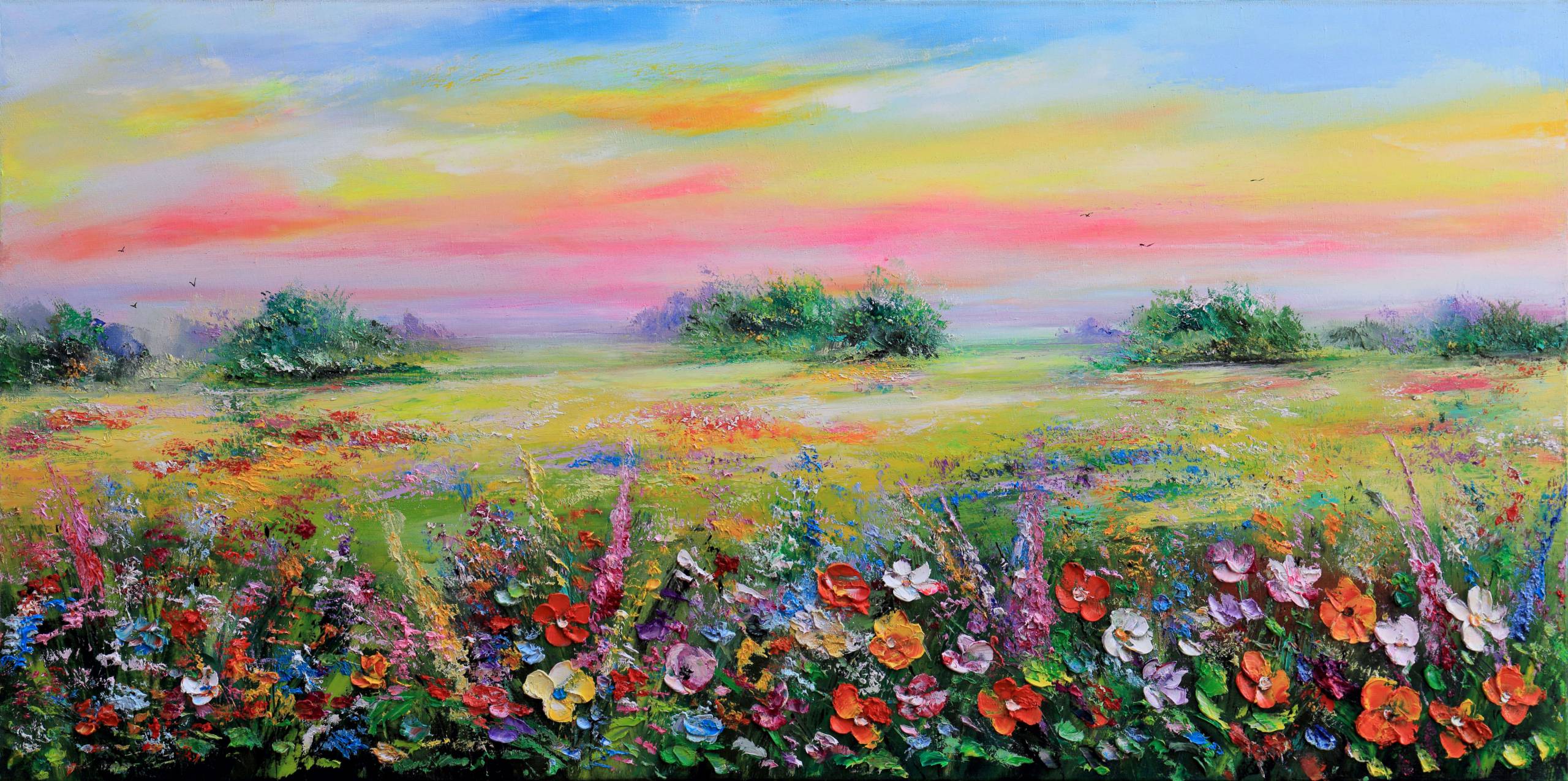 KOLOROWA ŁĄKA obraz olejny 80x40 cm