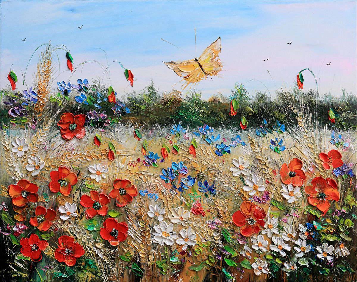 ŁĄKA Z MOTYLEM obraz olejny 50x40cm