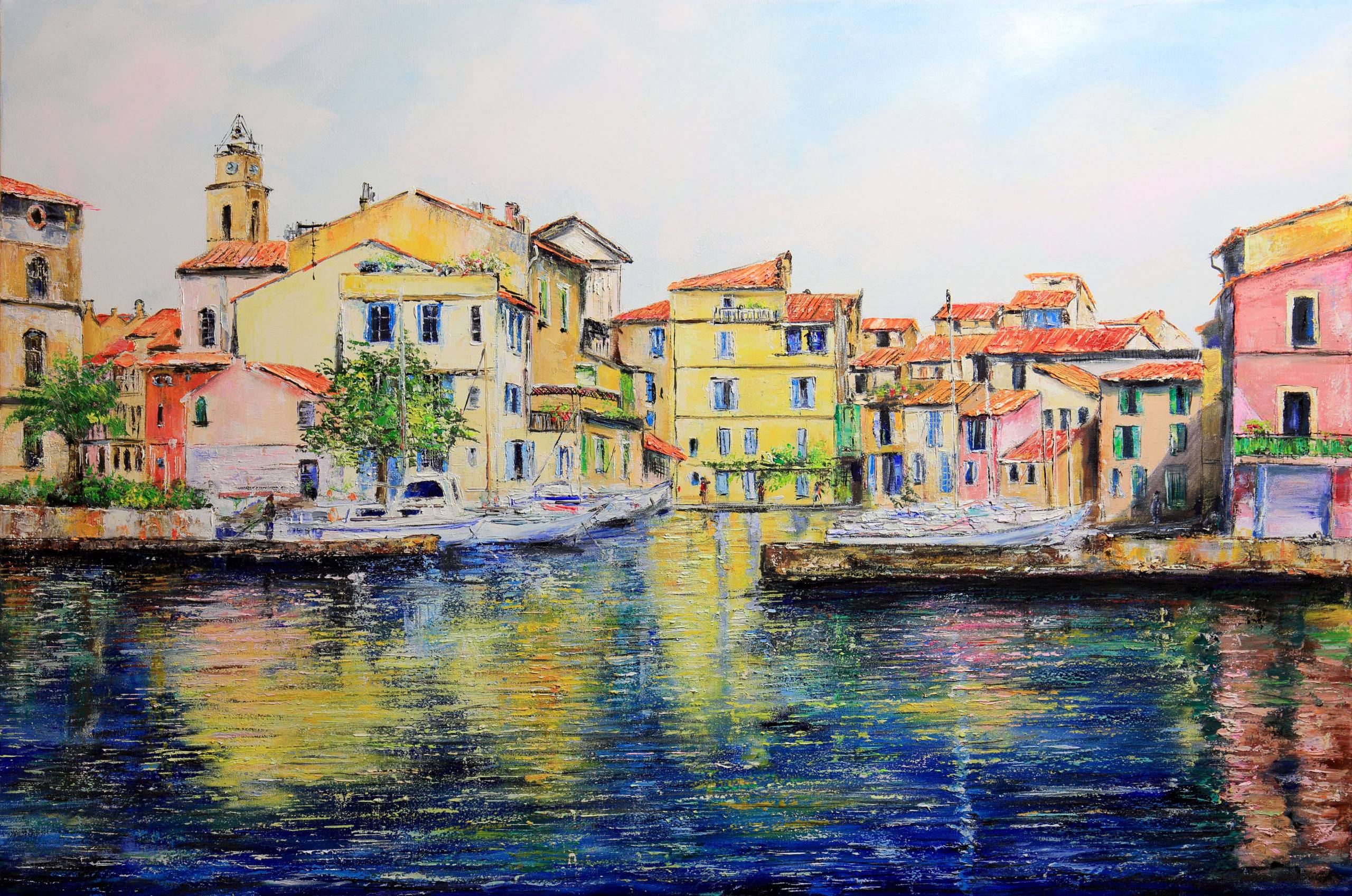 PORTOWE MIASTECZKO obraz olejny 90x60 cm