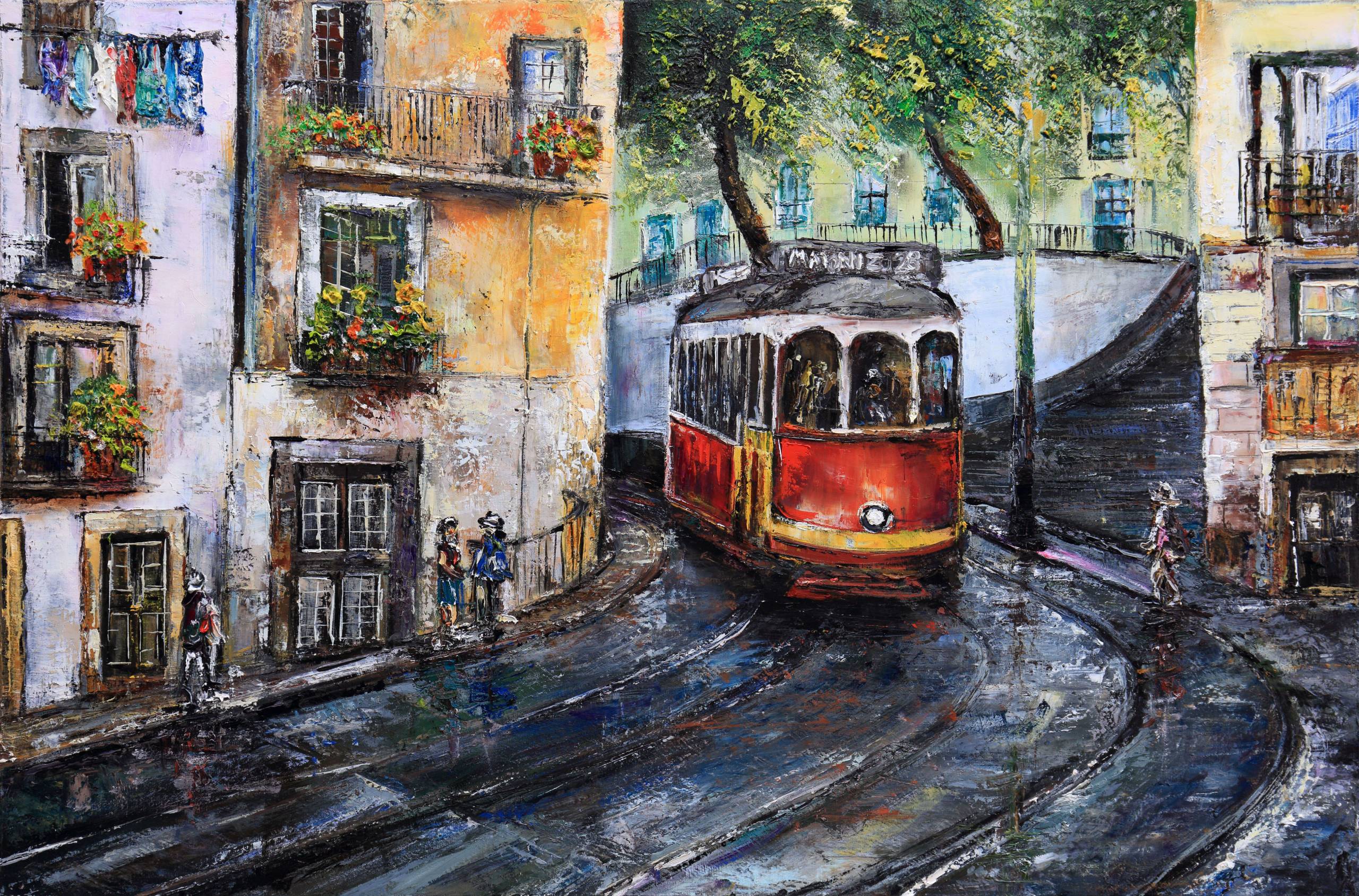 Radosław Popek - TRAMWAJ obraz olejny 60x40 cm